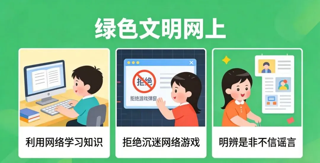 教育孩子合理使用网络,避免沉迷网络游戏。引导孩子利用网络资源进行学习,拓宽知识面;同时教育孩子提高防范意识,培养孩子要有一双明辨是非的眼睛,不轻信不实舆论,自觉维护清朗的网络空间,不做非法分子操纵舆论扰乱社会的工具。