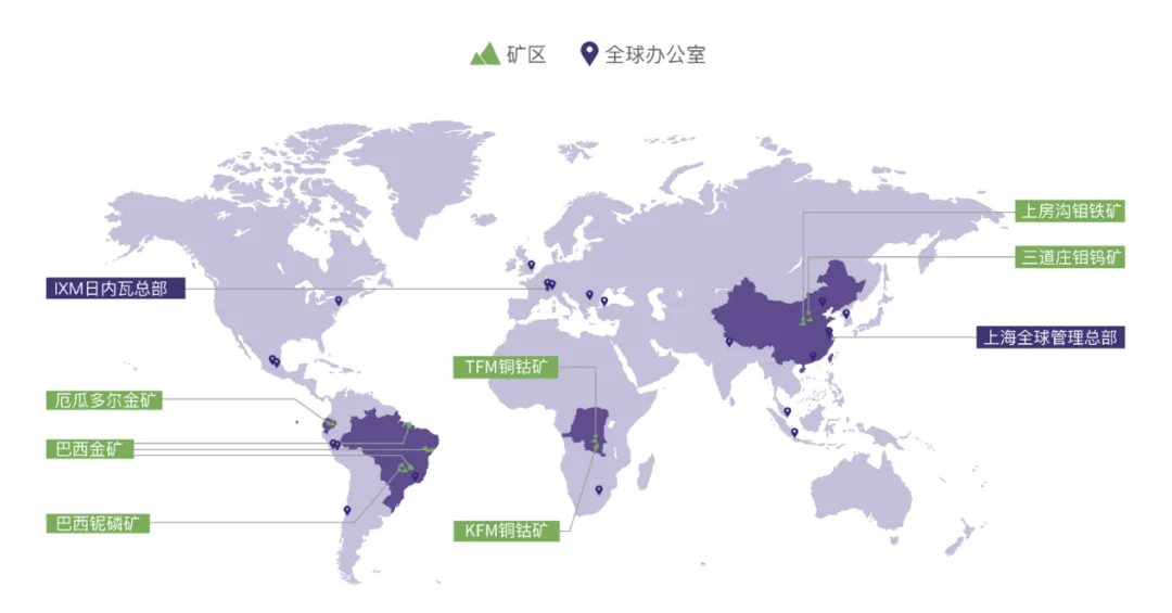 (洛阳钼业全球项目及办公室/代表处位置一览)