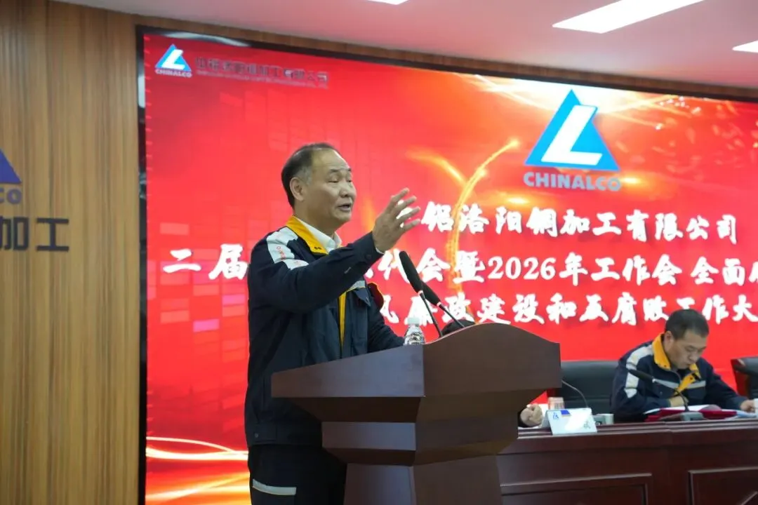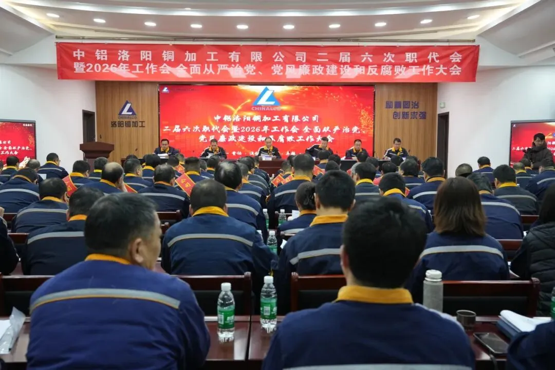 【本刊讯】2月6日,中铝洛阳铜加工有限公司(以下简称“洛阳铜加工”)召开第二届第六次职工代表大会暨2026年工作会,全面从严治党、党风廉政建设和反腐工作大会。大会全面总结2025年及“十四五”工作,谋划“十五五”发展蓝图,部署2026年重点任务,动员全体干部职工坚定信心、担当作为,为全面建设国内最具竞争力的先进铜基材料企业团结奋斗。会议由洛阳铜加工副总经理、工会主席赵鲸主持。