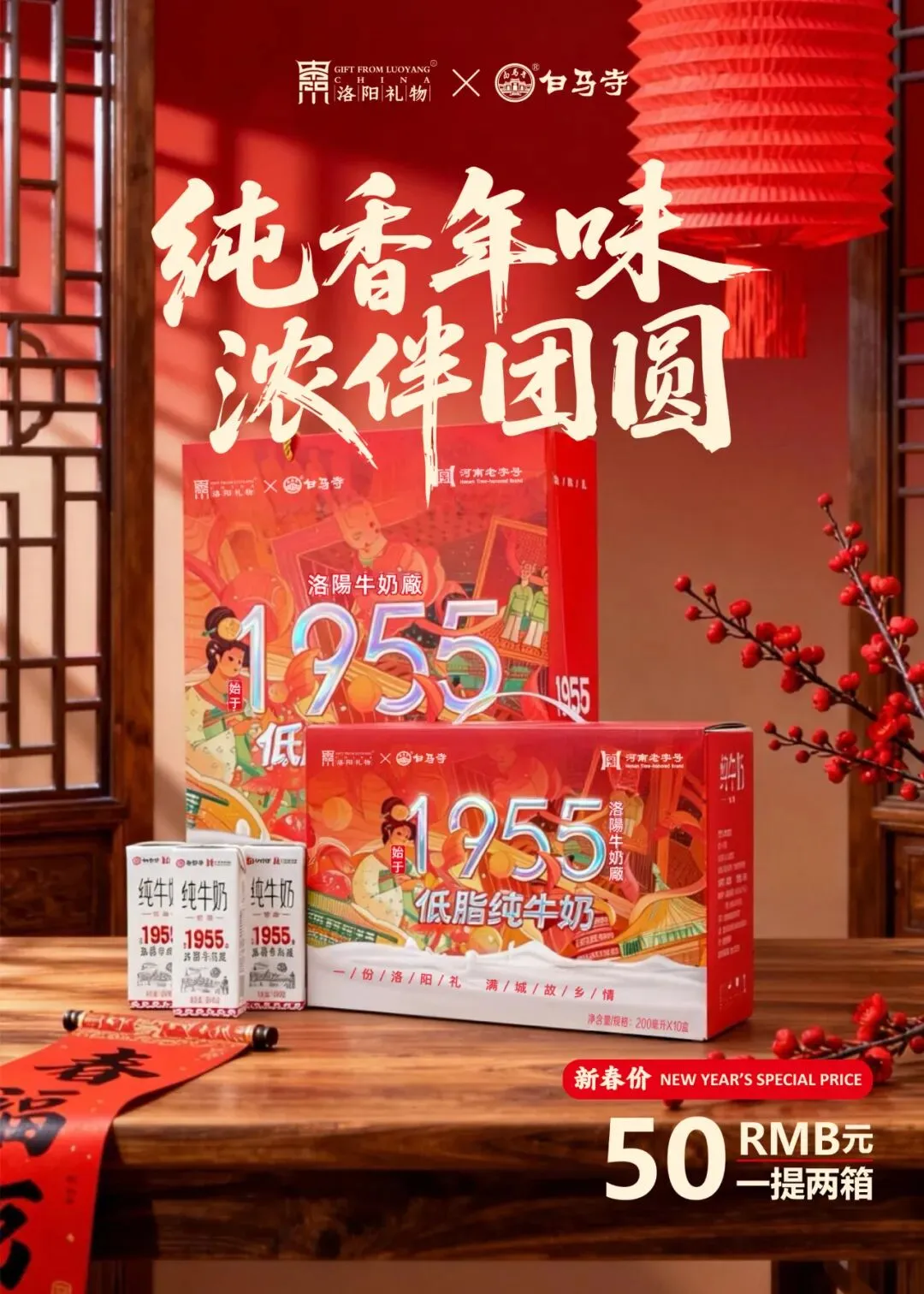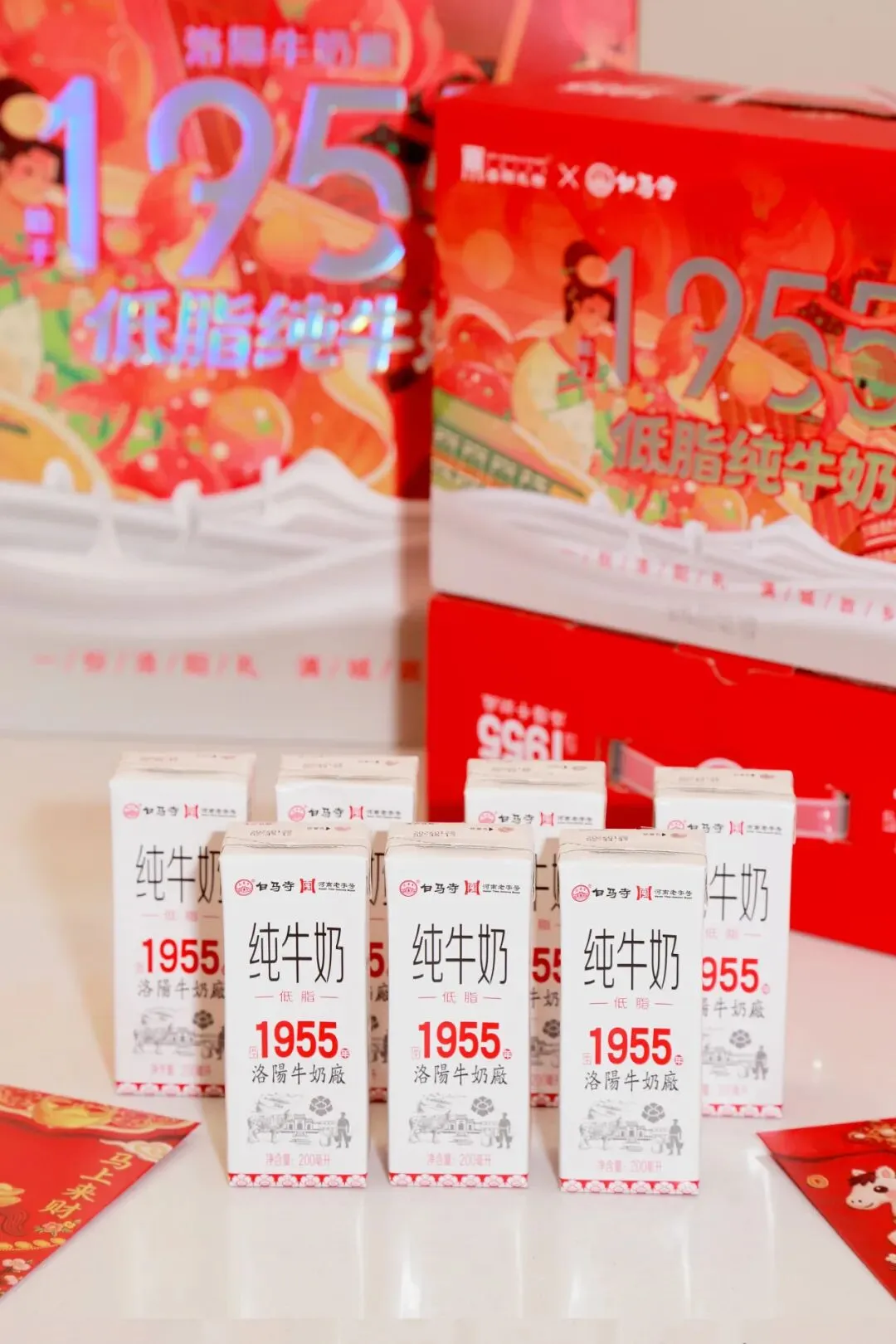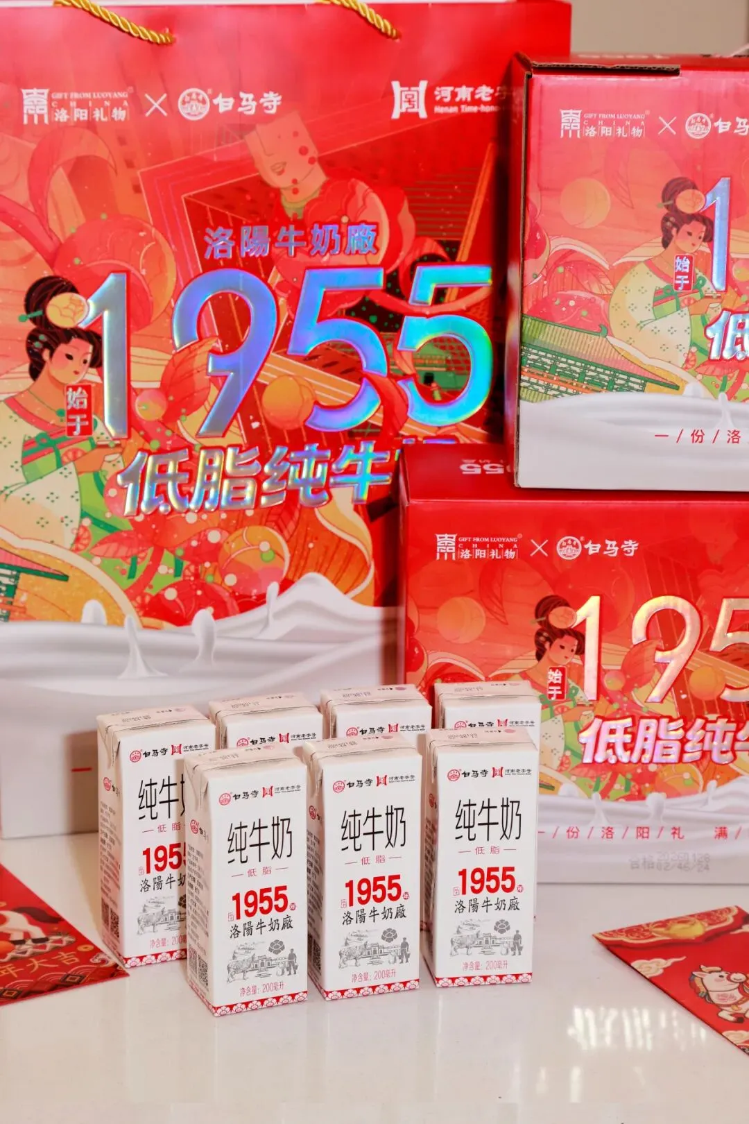这个新年,无论居家团圆还是身处异地,带上白马寺1955低脂纯牛奶,用一份有温度、有品质的伴手礼,温暖身边每一位重要的人。