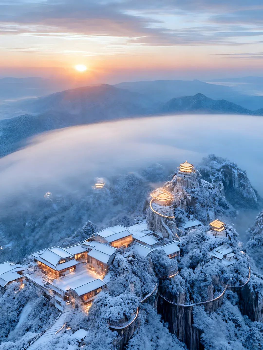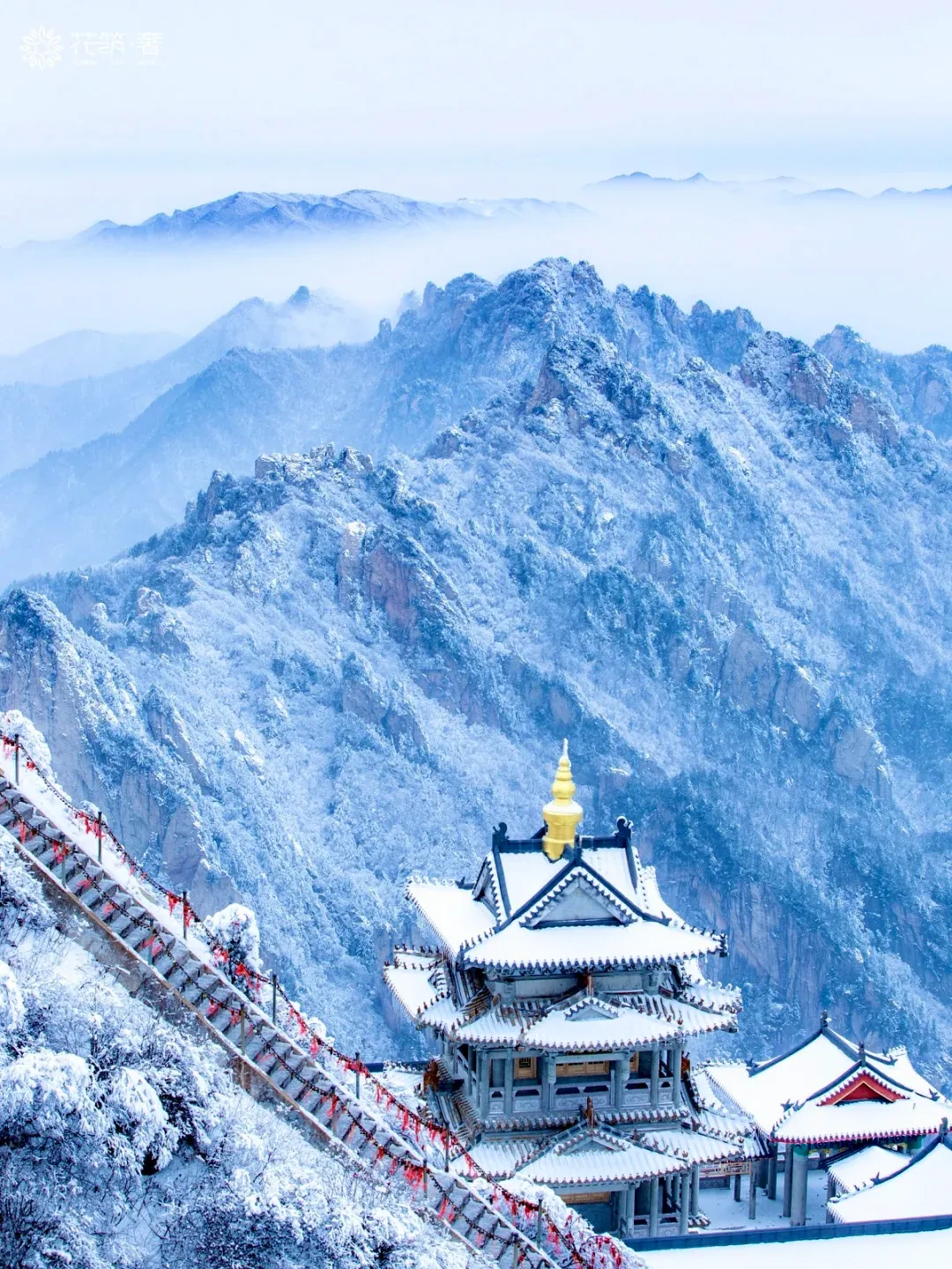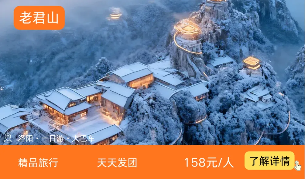 当冬天的画笔挥过八百里伏牛山脉,位于洛阳栾川的老君山,便卸下了四季的繁华,披上了一袭最纯净的素衣。雪,是这里冬日的绝对主角。它抹去了山石的棱角,柔化了道观的庄严,将整座山脉雕琢成一座悬浮于云海之上的“冰雪仙境”