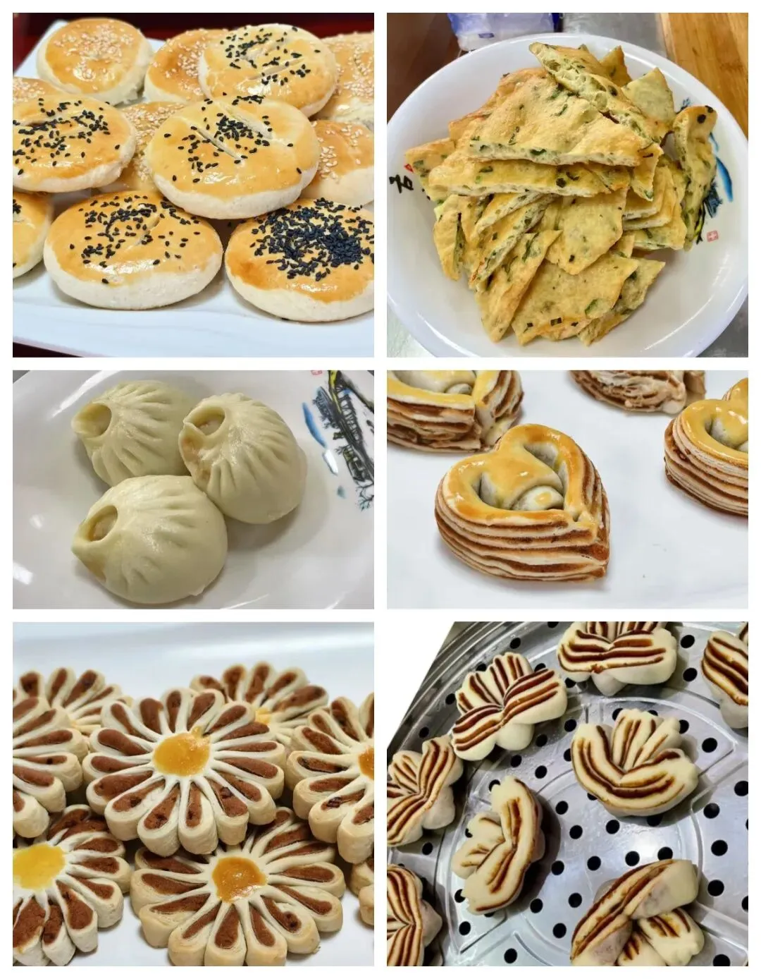 🧑🏻🍳内容:包子,各式蒸饺,油条,油饼,菜角,手抓饼,鸡蛋饼等各种饼类,花式馒头,酥皮月饼,荷花酥等各种酥(各种馅的调制)等(全部实操)