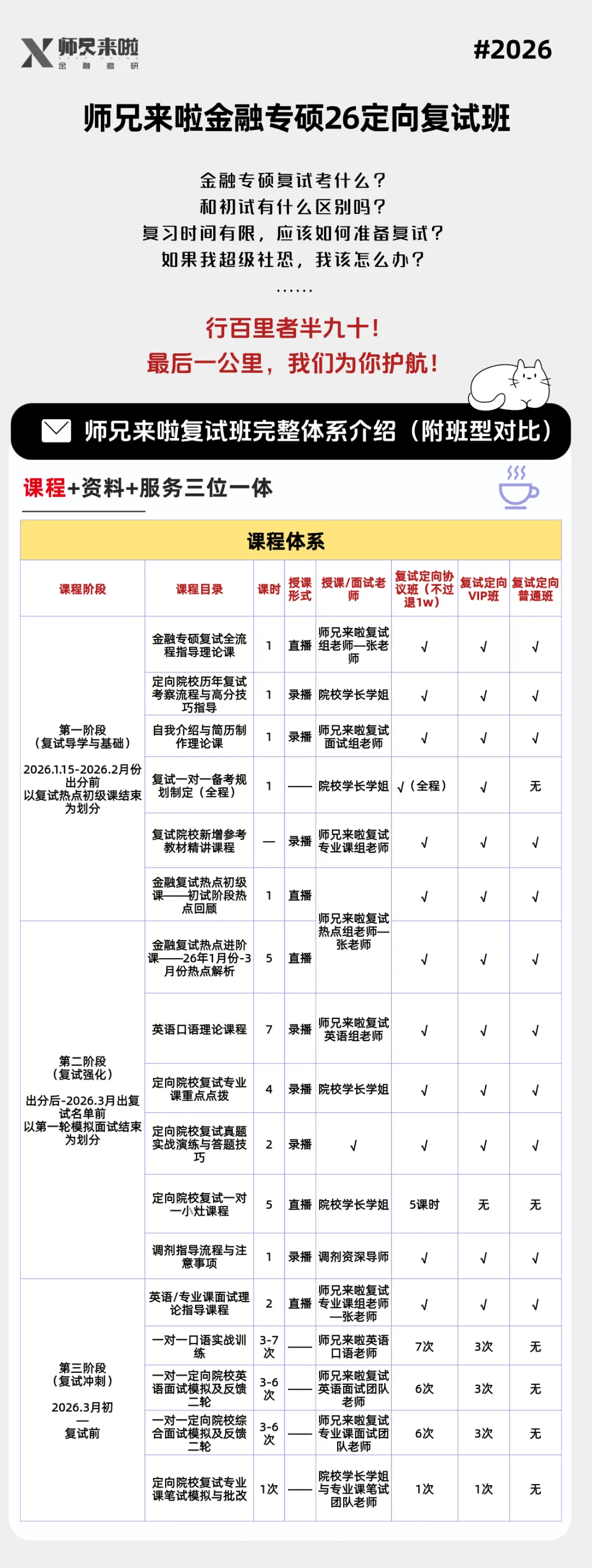 师兄来啦26复试定向上岸班正在招生当中,涉及40+院校,包括复试全套理论课程、专业课划重点、新增参考教材精讲、初复试热点、英语口语训练、自我介绍与简历一对一修改、模拟面试、笔试模拟与批改、调剂流程指导等完整内容,复试最后一公里,我们为你护航~