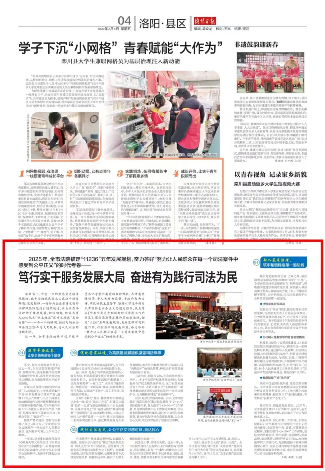 法槌落下,为害一方的黑恶势力被连根拔除,让平安的底色在正义裁决中越发鲜亮;笔尖轻移,一份份为企业量身定制的法律风险防范指引悄然送达,让企业在法治护佑下健康发展;短信响起,胜诉当事人60.6亿元“纸上权益”成功兑现成“真金白银”……一个一个的瞬间,接续勾勒出全市法院2025年为大局服务、为人民司法的清晰年轮。