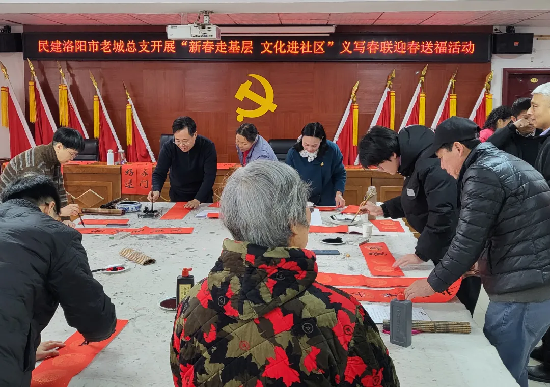 为弘扬中华优秀传统文化,营造喜庆祥和的春节氛围,2月5日上午,民建洛阳市老城总支组织书画家会员走进老城区西关街道玄武门社区,开展“新春走基层,文化进社区”义写春联迎春送福活动,把浓浓的年味和新春祝福送给社区居民。中共老城区委常委、统战部长李阳,区委统战部副部长朱鸿瑞,老城总支主委朱晓新及部分会员书画家参加活动。