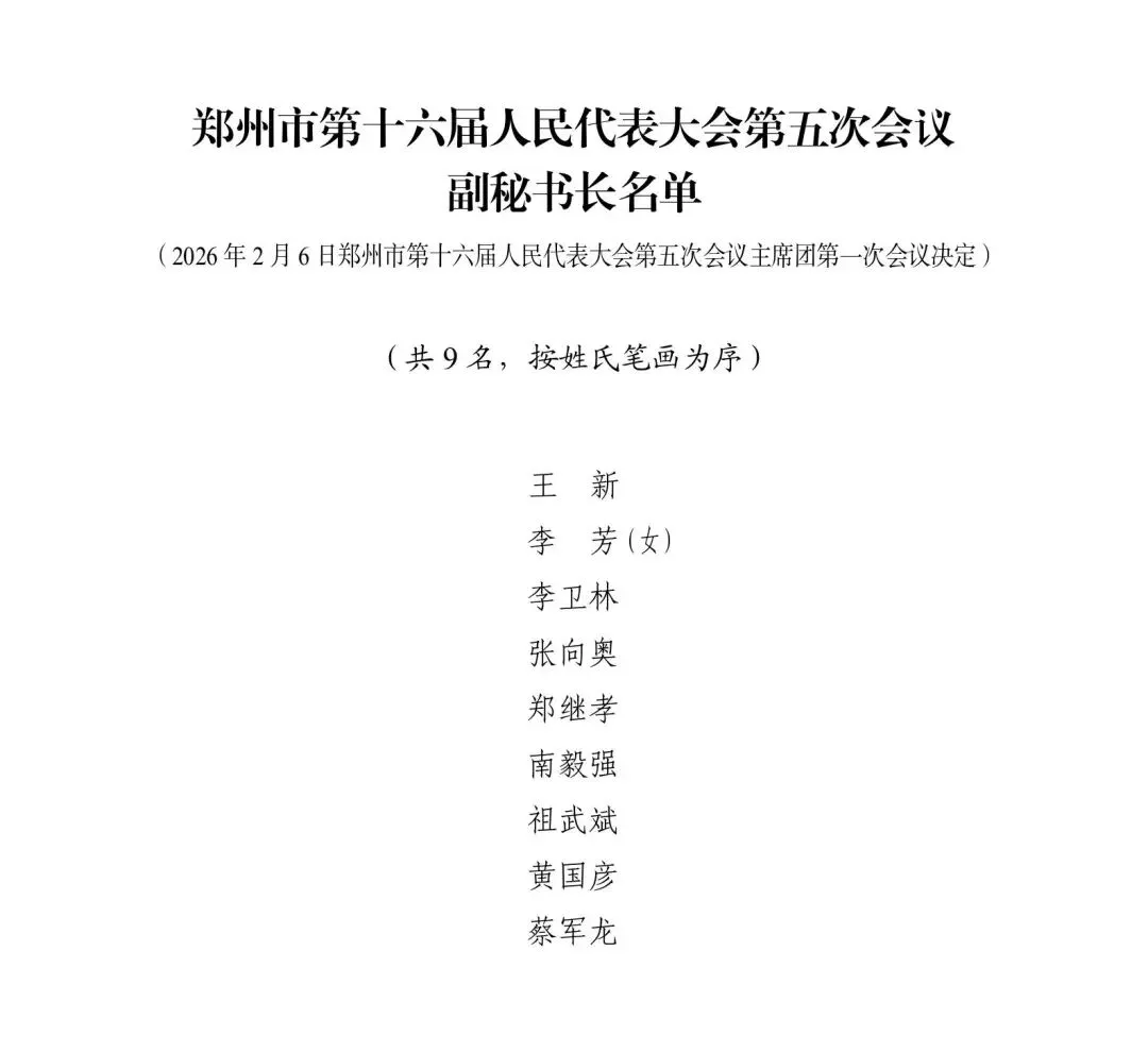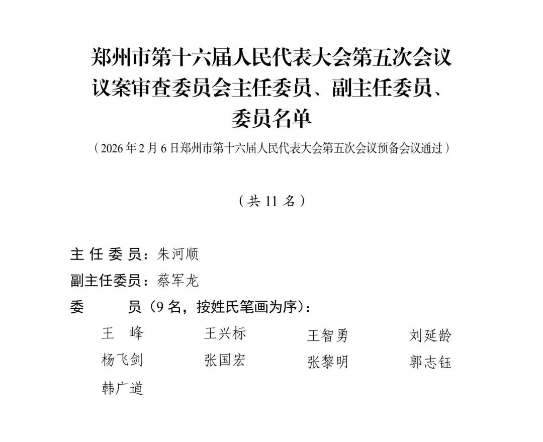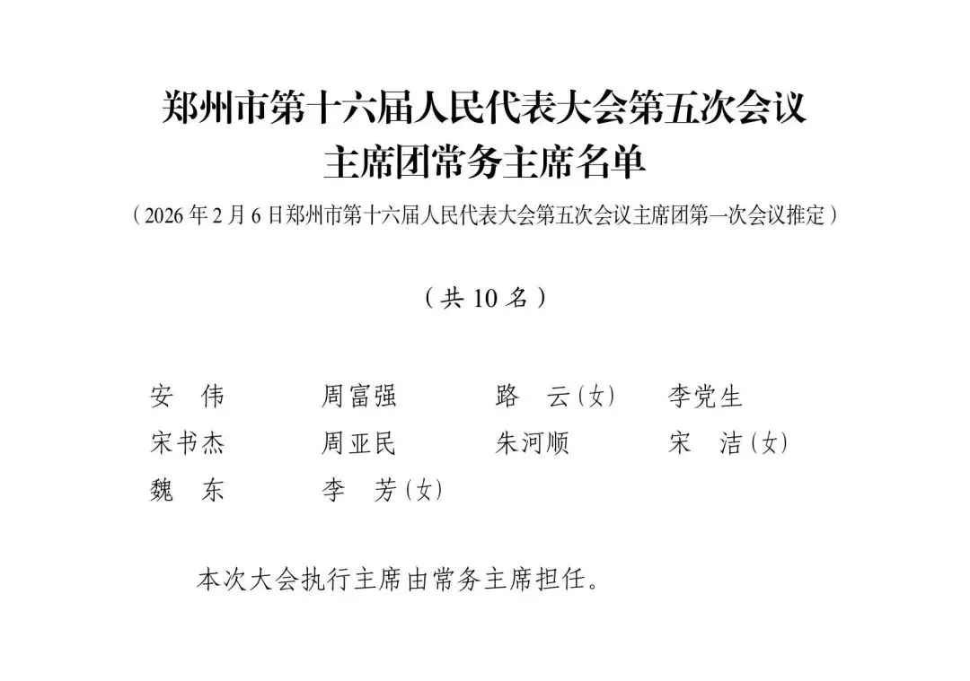 郑州市第十六届人大五次会议预备会议、主席团第一次会议通过各项名单