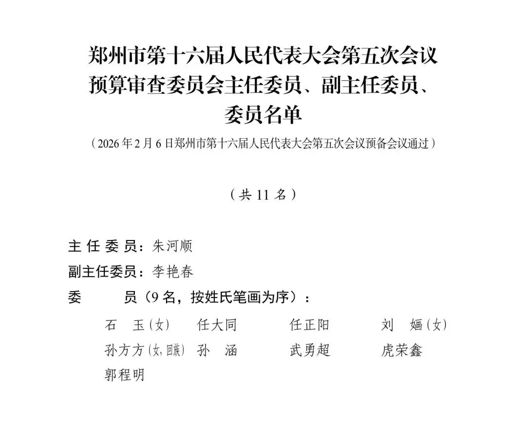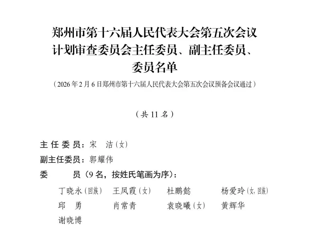 >郑州市第十六届人大五次会议预备会议、主席团第一次会议通过各项名单