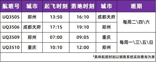 开航初期,乌鲁木齐航空推出限量购票优惠。郑州至重庆单程400元起,重庆至郑州单程460元起,郑州至成都天府单程420元起,成都天府至郑州单程450元起(以上价格不含税费)。旅客朋友可通过乌鲁木齐航空官方网站、海南航空微信小程序、海南航空APP、24小时购票热线95334及授权旅行社、票务代理平台查询航班动态、预订机票。春运期间客流量大,托运行李、安检排队时间较长,建议旅客至少提前两小时抵达机场。同时,请注意行李物品是否符合乘机相关规定,避免携带“三超”行李。