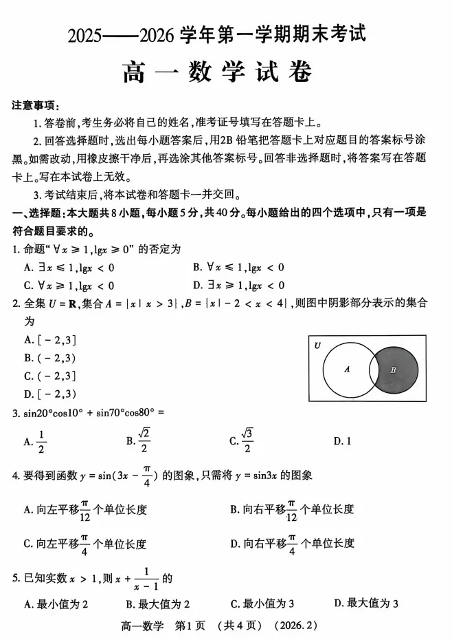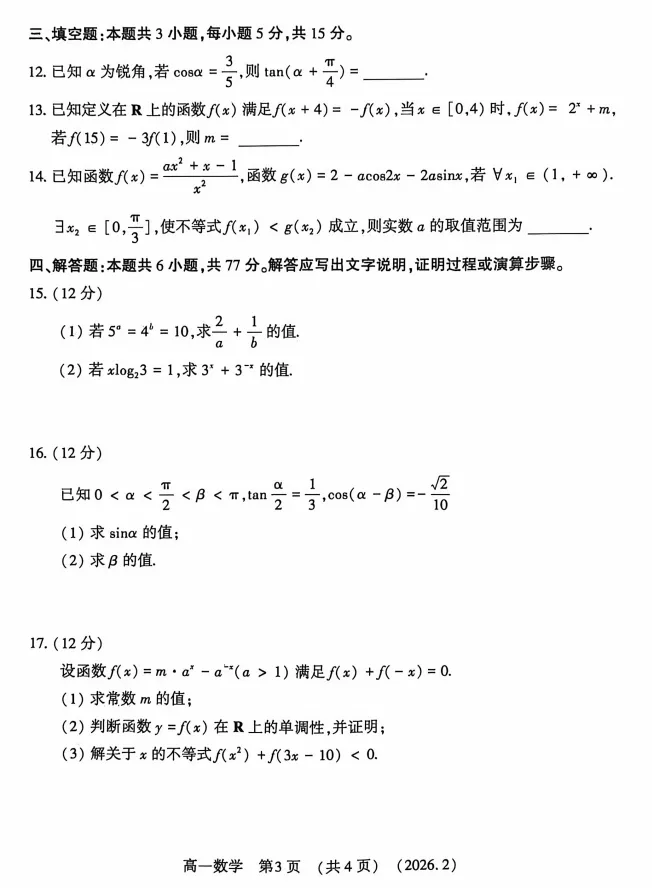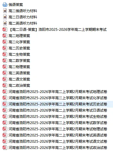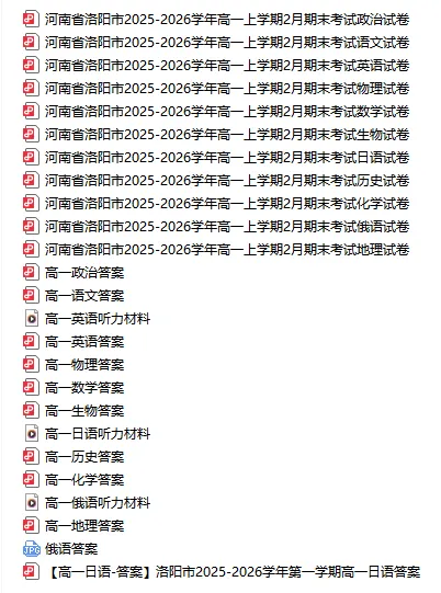我用夸克网盘给你分享了「河南省洛阳市2025-2026学年高一、高二上学期期末考试各科试卷及答案」,点击链接或复制整段内容,打开「夸克APP」即可获取。/~fad33CcaL8~:/