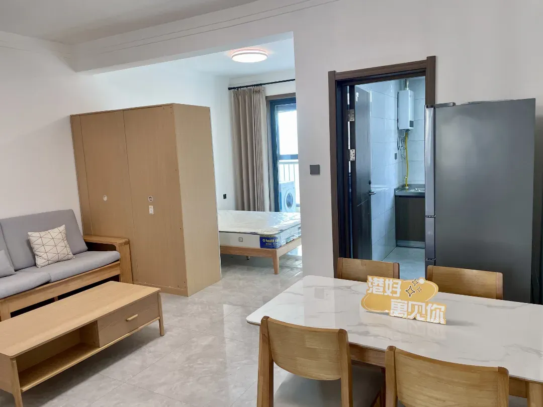 全屋精装:配备独立卫浴、烟机灶具、空调、冰箱、洗衣机、热水器、床、床垫、沙发、衣柜、鞋柜、电视柜、茶几、桌椅、晾衣架等生活设施,实现拎包入住。