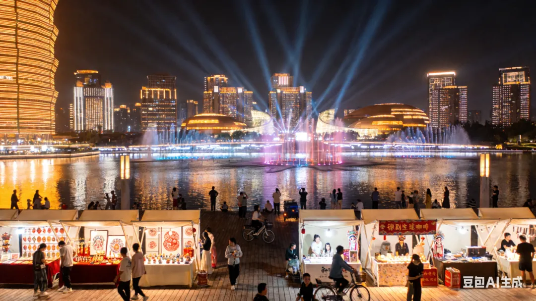 夜晚的郑东新区更是活力四射。由现代化建筑群构成的CBD灯火辉煌,灯光秀在如意湖畔上演,水幕与激光交织,市民们在广场上散步、骑行、欢聚。年轻艺术家支起摊位,展出剪纸、泥塑等手工艺品,风格传统或前卫,每一件都蕴含中原元素。人们在此品一杯豫剧主题咖啡,听一曲豫剧选段,感受古老文明与现代都市的完美交响。
