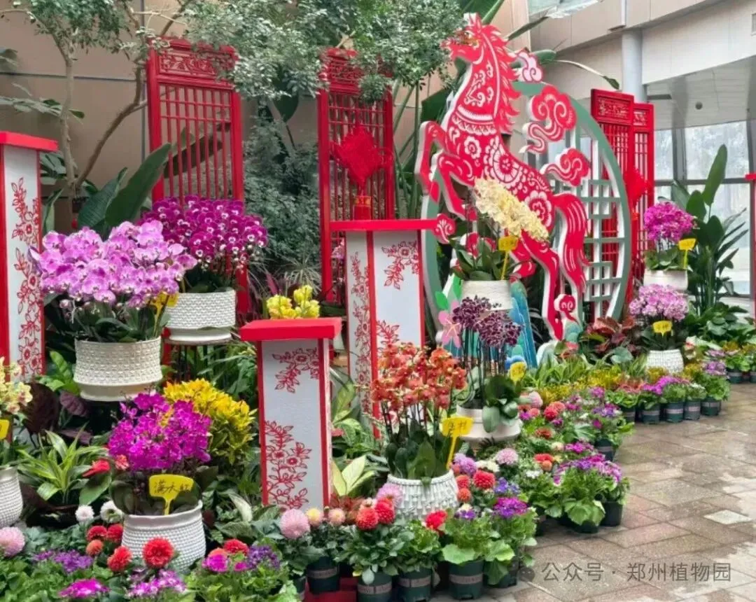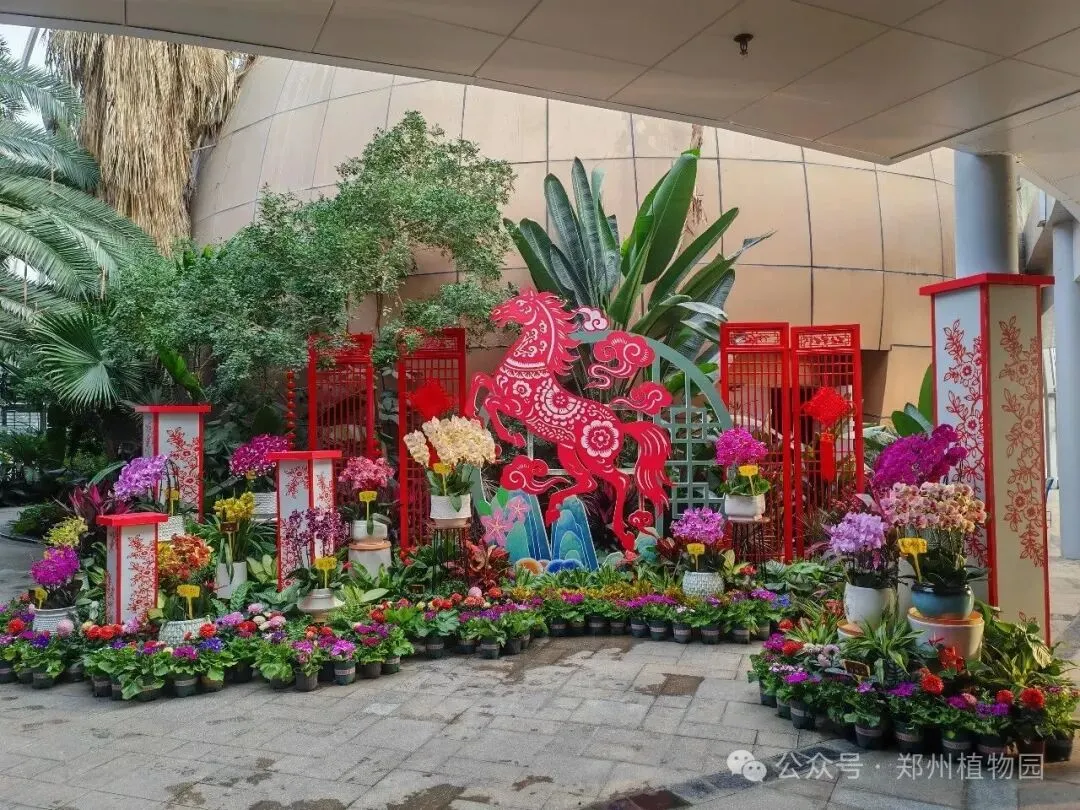 郑州植物园热带植物展览温室绿意葱茏,花果相映成趣,为“骏马迎春 花满商都”2026年迎春花展更添盎然生机。作为本次花展骐骥迎春三部曲的收官之章,“马踏祥云”展区以巧思构景,勾勒出一幅归心向暖、前程似锦的东方美好画卷。