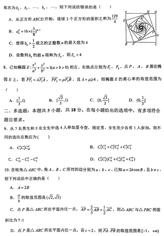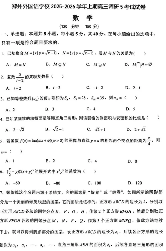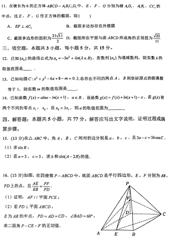 高三数学:八省联考(T8联考)2026届高三12月检测数学试题+参考答案