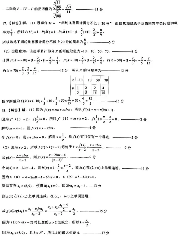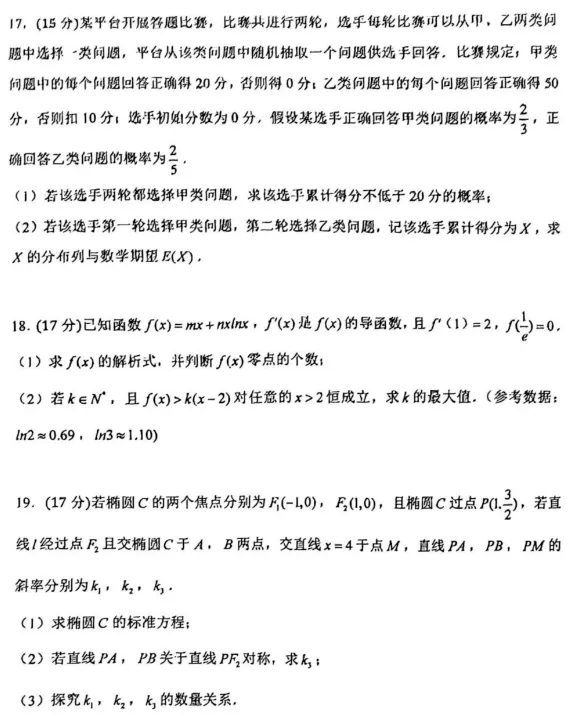 实验班数学 || 高考模拟题选析 : 广东名校联考数学卷主观题考题选解(解答题·压轴题)