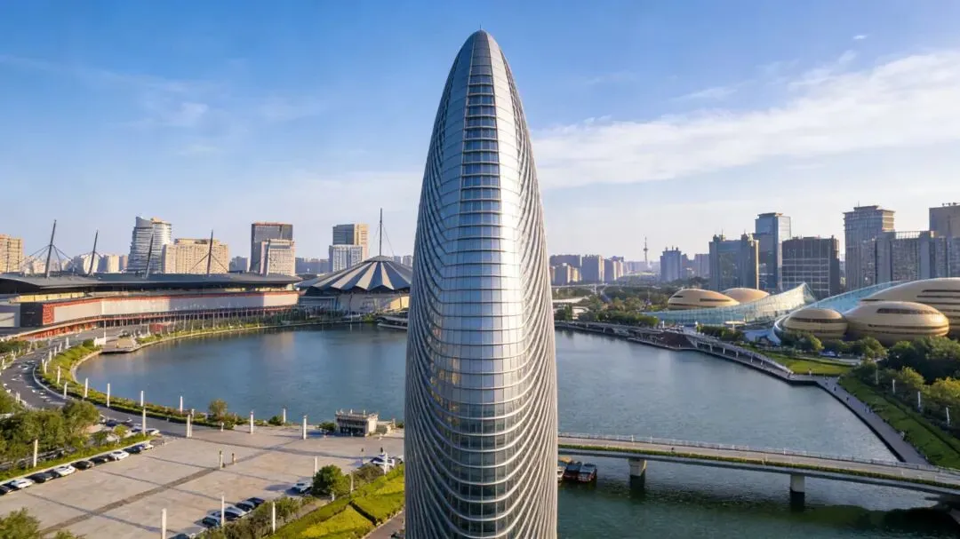 梭形的流线型塔楼,打破了方形建筑的气阻,在玄学中是“引气”的绝佳造型:既像节节攀升的竹子,暗合竹文化的挺拔向上,又似古代祭祀礼器“琮”的轮廓,承接天地间的正向气场。更妙的是,塔楼内部的螺旋上升中庭,配合电梯井道、通风管道的垂直空间,构成了郑州独有的“人工龙脉”,引导地气向上汇聚,形成强大的能量漩涡,让这里的气“活”起来,而非停滞不动。