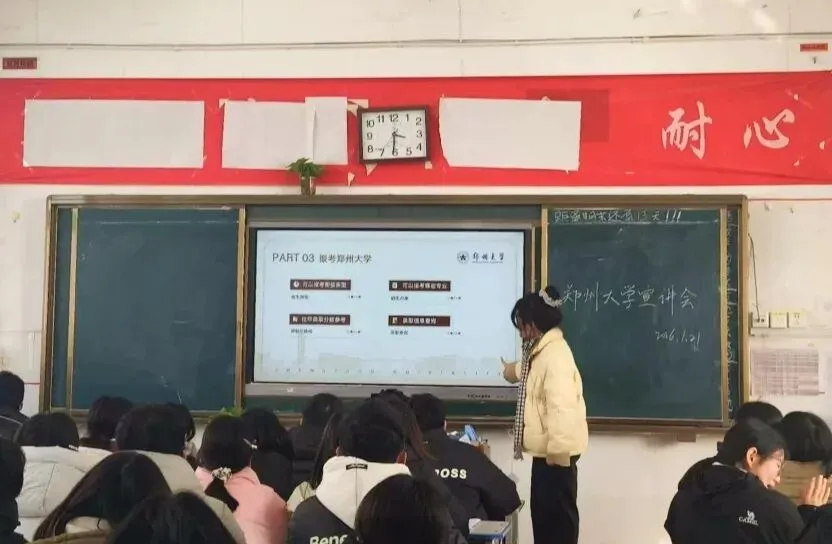 寒冬料峭,朔风渐起,却挡不住郑大学子反哺母校的热忱初心!我们怀揣着对母校的感恩与对学弟学妹的期许,于1月27日重返熟悉的中学校园,只为与青春正好的他们共赴一场关于成长与梦想的温暖约定,传递郑大的故事与精神。教室里,他们的热情提问和积极互动,让整个宣讲过程充满了活力与温度。从学习方法到生活点滴,每一个问题都承载着他们对大学生活的憧憬和思考。而我们作为曾经的他们,用亲身经历和真诚分享为他们答疑解惑,努力搭建起一座通往梦想的桥梁。