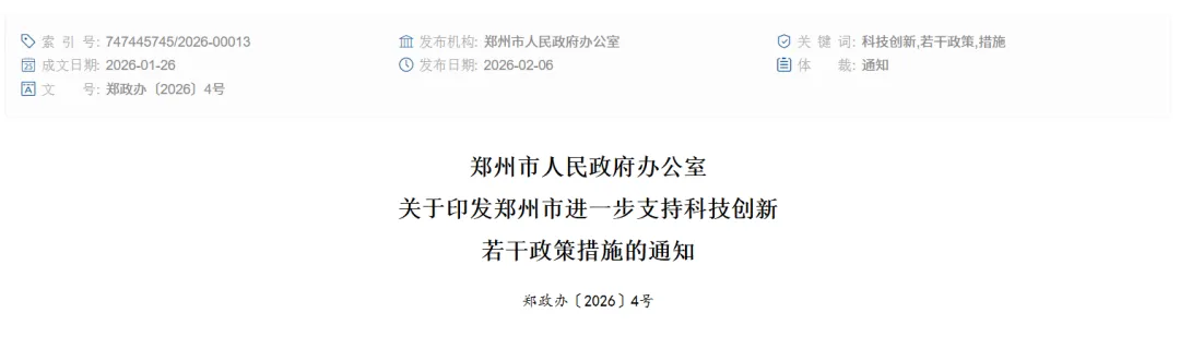 大河财立方消息,2月6日,郑州市人民政府办公室印发《郑州市进一步支持科技创新若干政策措施》。从培育壮大创新主体、引导加大研发投入、支持创新平台建设等多个方面加强部署。