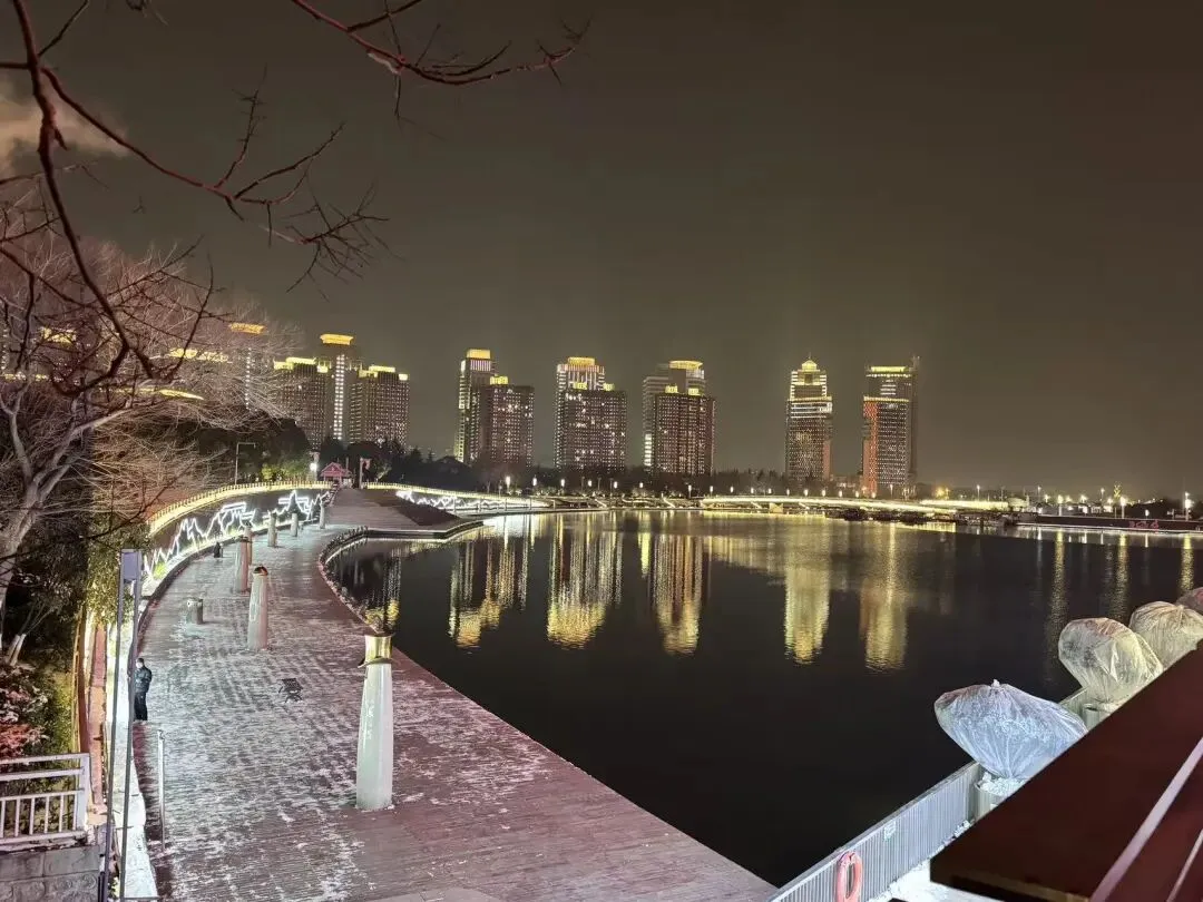 吃完晚饭出去市区逛了一圈,回来玉米楼在夜色中闪闪发光,如意湖也显得特别的安静。