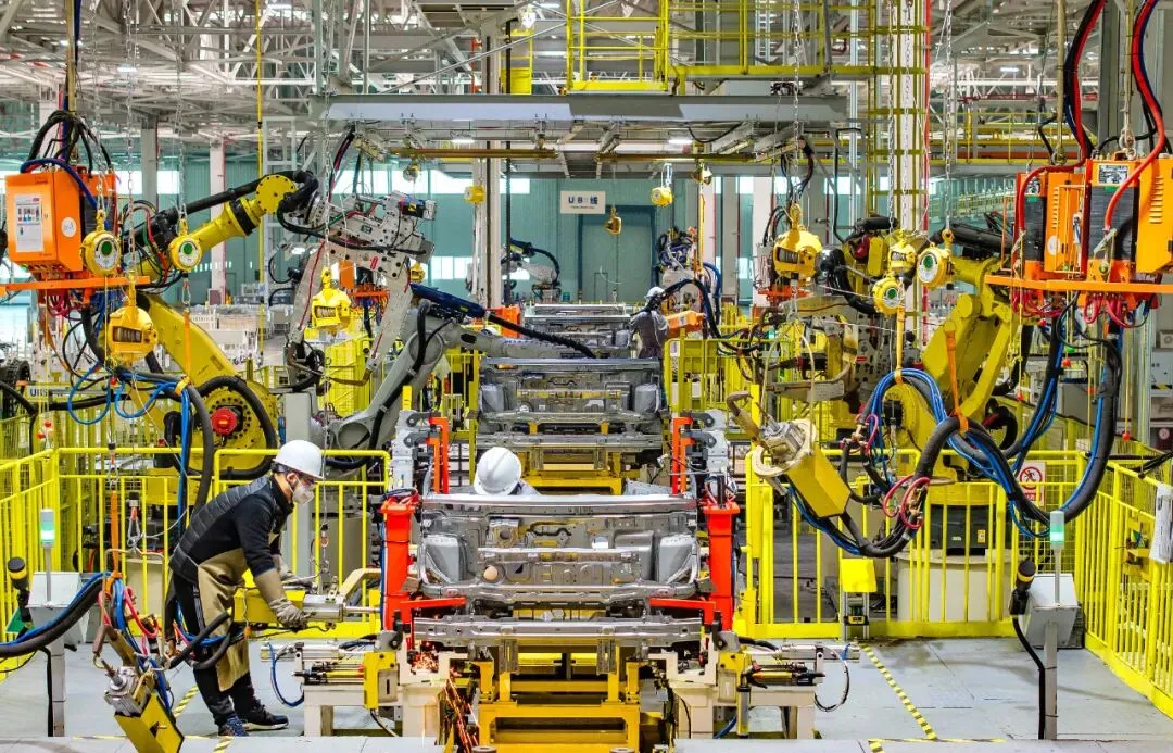 2月3日,位于长葛市工业园区的河南森源集团五菱新能源焊装车间内,59 台机器人采用OPENGATE、顶盖激光焊等先进工艺,实现整车全自动焊接,保证整车的高强度和高精度。吕超峰 摄