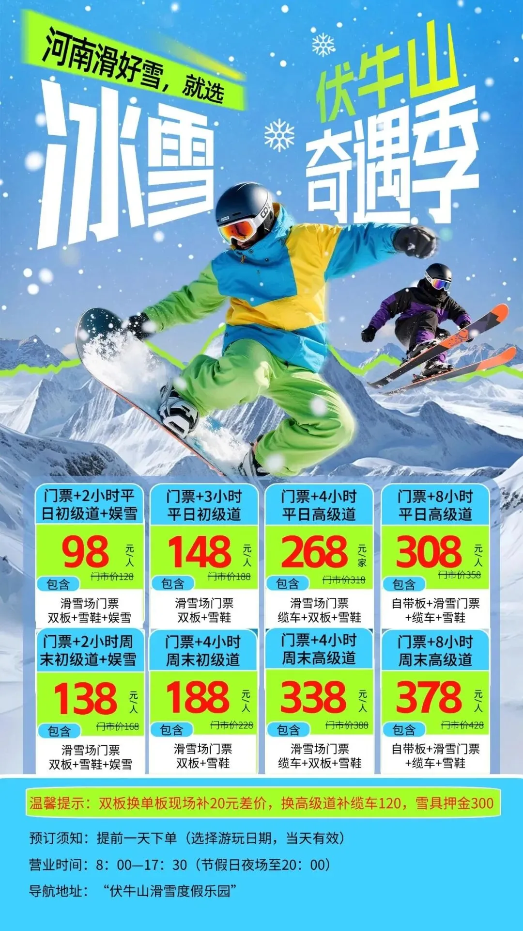 4、伏牛山滑雪票-周末2小时 +半小时换装时间 赠娱雪园:138元/人