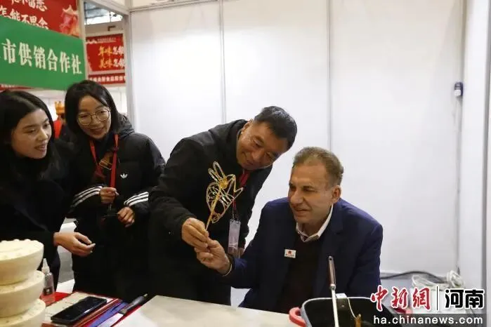 图为工作人员向约翰·卡萨达介绍河南特产。陈贵洋 摄