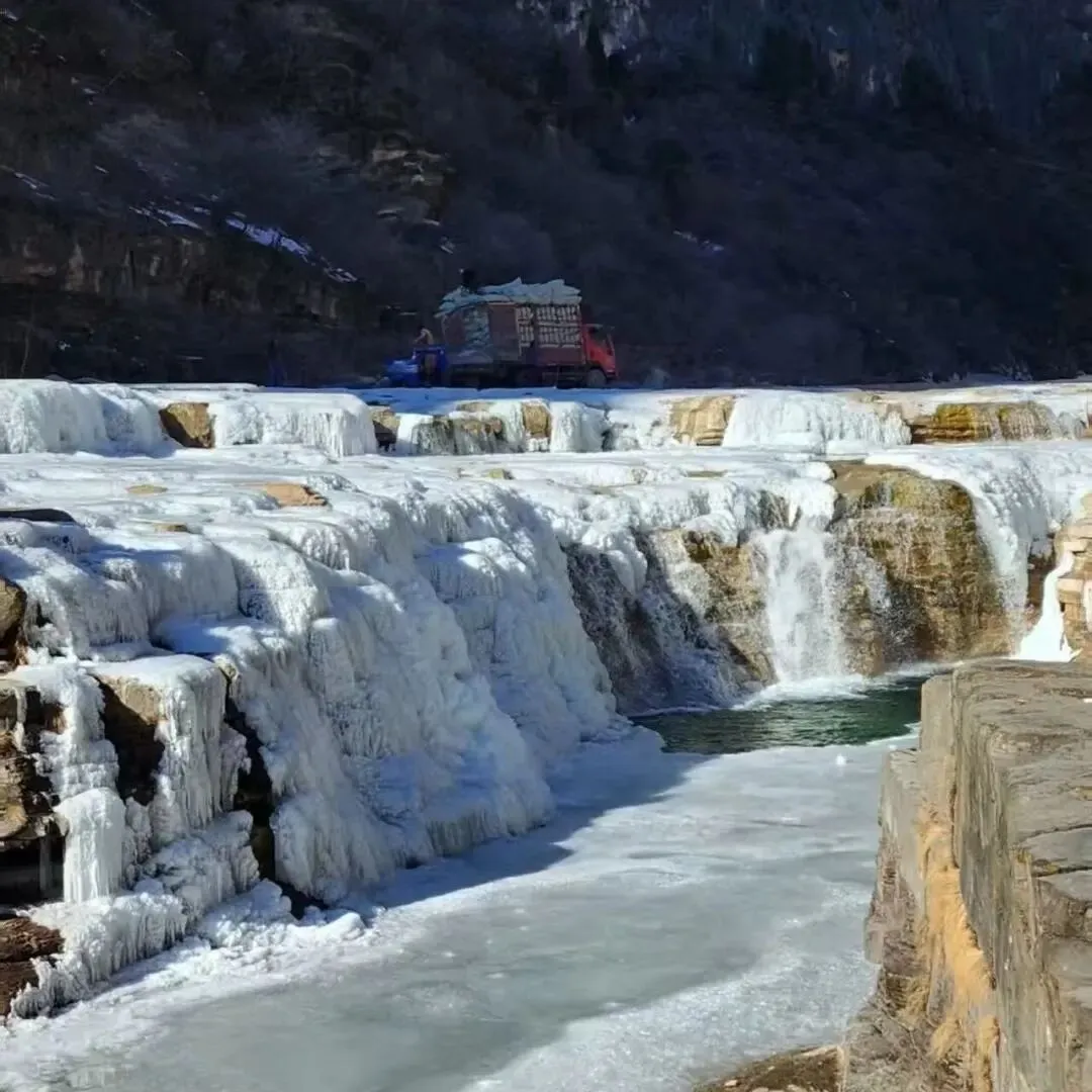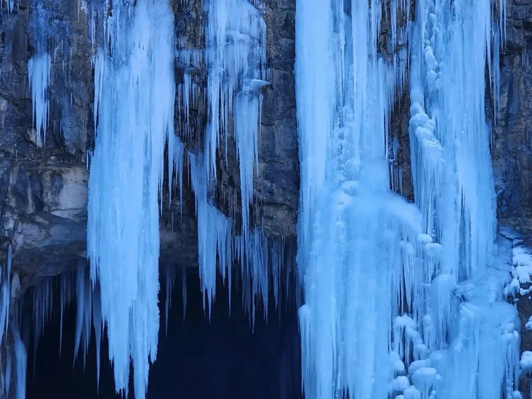 高达140多米的冰瀑,外形酷似圣诞树,每年冬季都会出现在河南林州的太行山中。