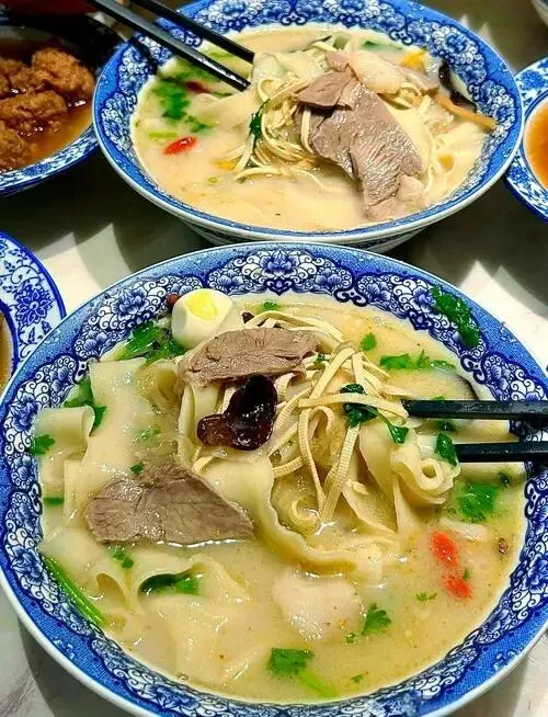 中午烩面来一大碗,合记、萧记都能打,三鲜的汤要清亮,羊肉要厚点,辣子油自己加。