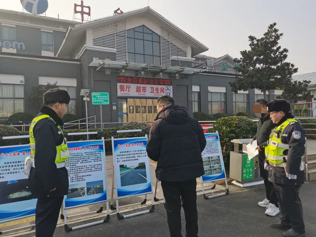 民警精准聚焦司乘人员出行高频场景,将宣传阵地前移至辖区各收费站、服务区,开展普法宣传与警示教育活动。民警通过发放宣传手册、现场讲解、悬挂警示标语等形式,向过往驾乘人员普及高速行车安全知识,重点围绕超速、超员、疲劳驾驶、占用应急车道等高发违法行为的危害及后果开展普法宣讲。同时,结合冬季高速团雾、路面结冰等易引发事故的特点,结合近期高速多车连环追尾、因跟车过近引发剐蹭等典型事故案例,用“身边事”警醒“身边人”,详细拆解事故成因、应急处置方法及安全行车要点,引导广大驾驶人摒弃侥幸心理,自觉遵守交通法规,牢记“降速、控距、亮尾”原则,从源头减少安全隐患,让安全出行理念深入人心。