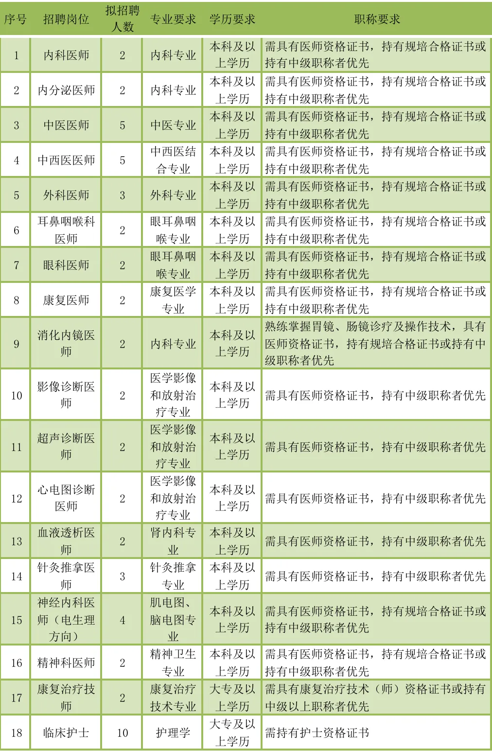 根据医院发展需要,进一步加强人才梯队建设,现面向社会招聘卫生专业技术人才。