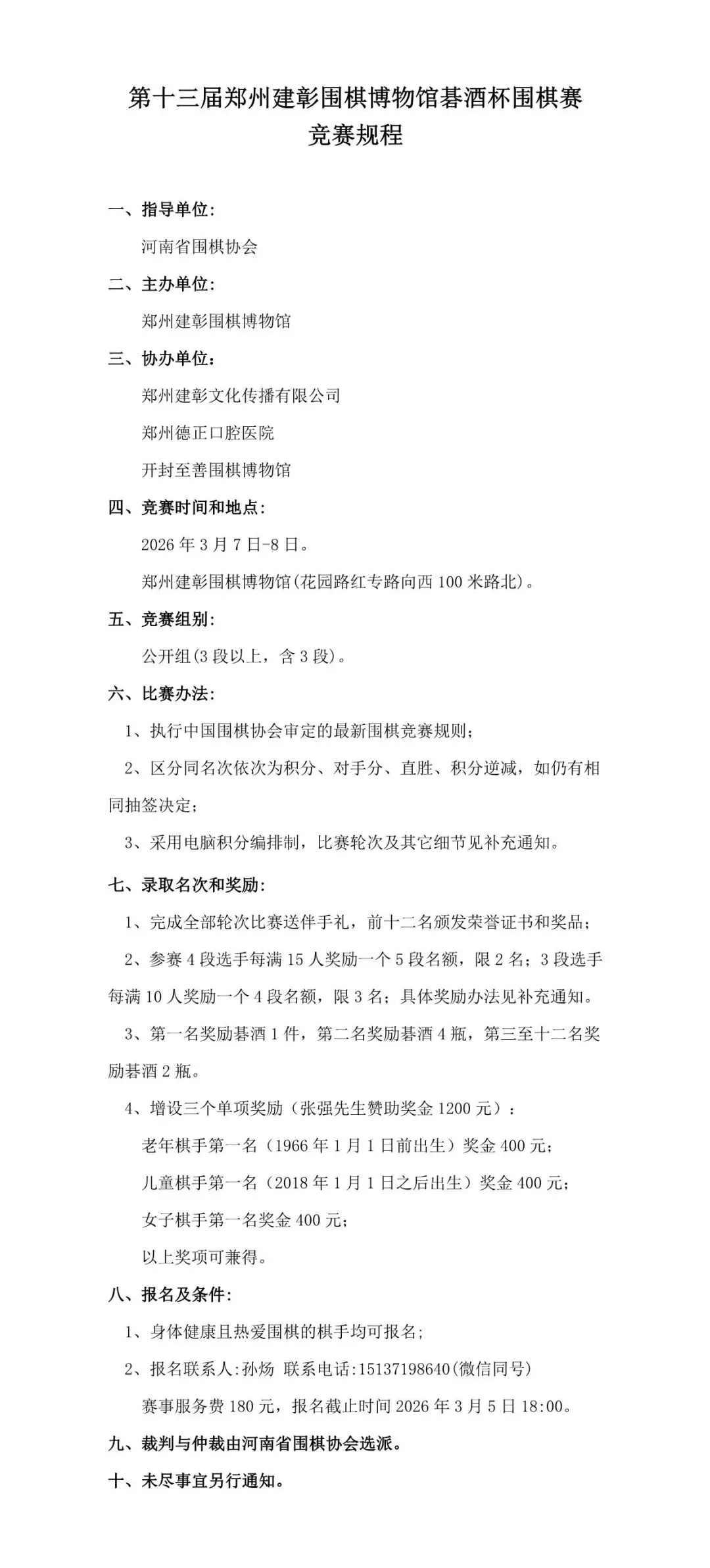 >第十三届郑州建彰围棋博物馆碁酒杯围棋赛竞赛规程