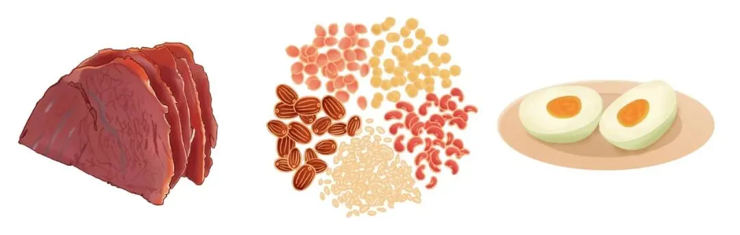 动物蛋白:鸡蛋(1个约含7g蛋白质)、牛肉、猪肉、鸡肉、鳕鱼、鲈鱼,氨基酸组成接近人体需求,吸收率高;