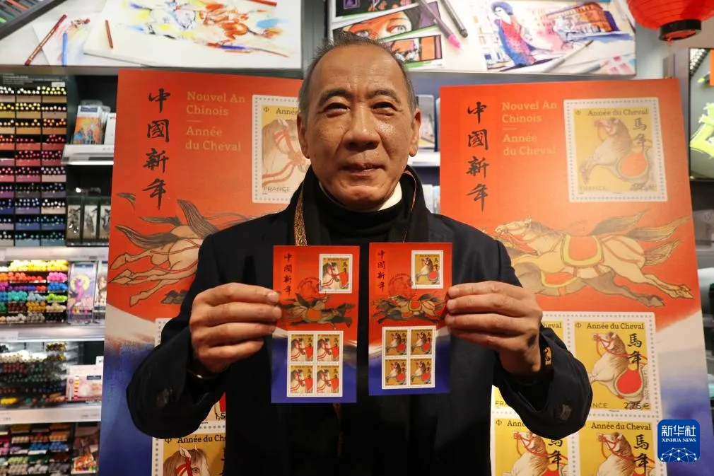 为迎接中国农历新年,法国邮政集团6日在巴黎举行马年生肖纪念邮票发行仪式。