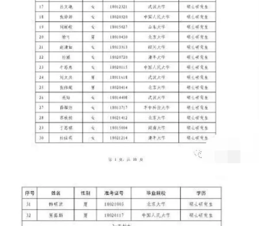 第28位苏女士来自北京大学,该同志疑似没有到岗,而是国考上岸水利部公务员,2024年时也已任二级主任科员(正科级,2024年10月信息),