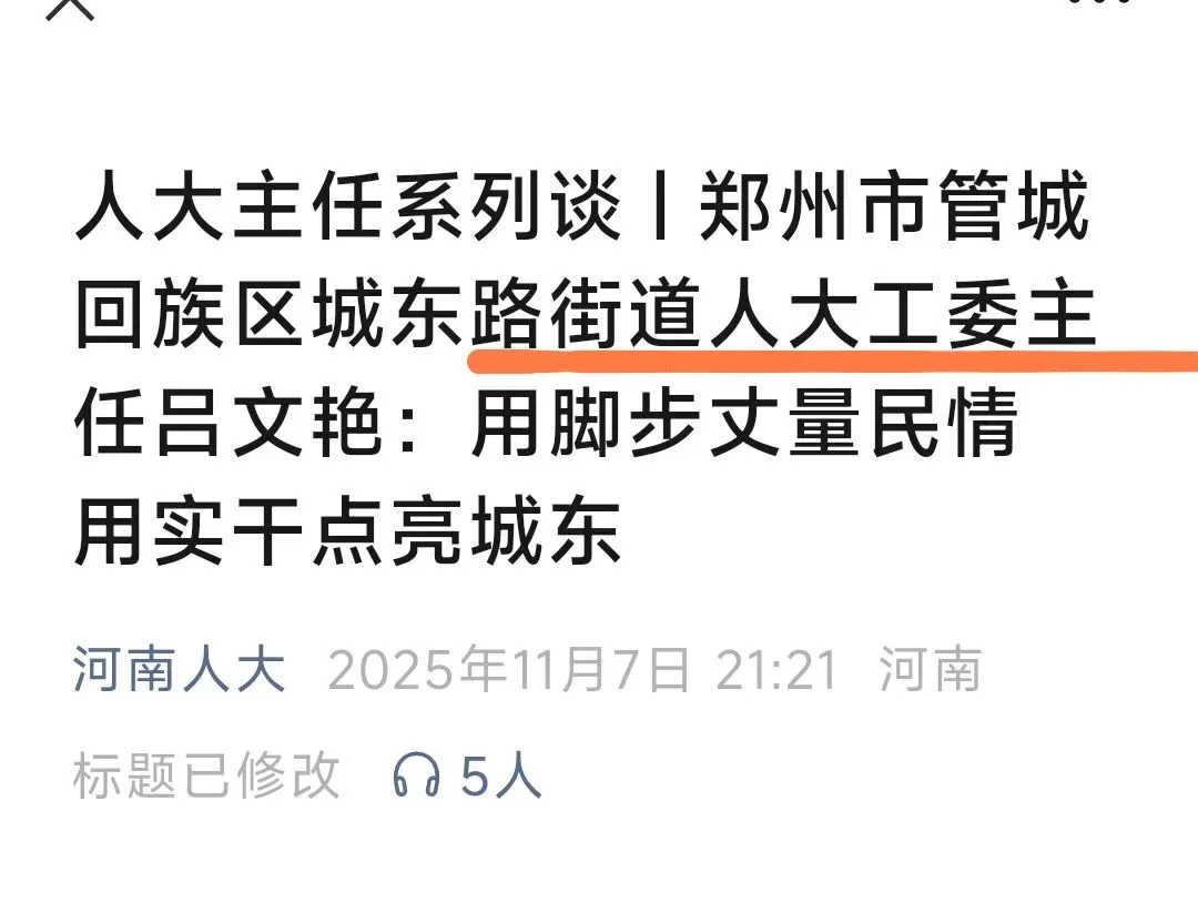 根据公开资料,第17位吕女士来自武汉大学,该同志已任郑州市管城区城东路街道人大工委主任(2025年11月信息,正科级),