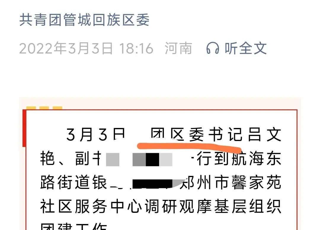 而有段时间共青团二七区委书记是2018年的清北选调生乔女士(不太夸张的讲,有段时间,2018的定向选调生包圆了郑州五大城区的团委书记)。