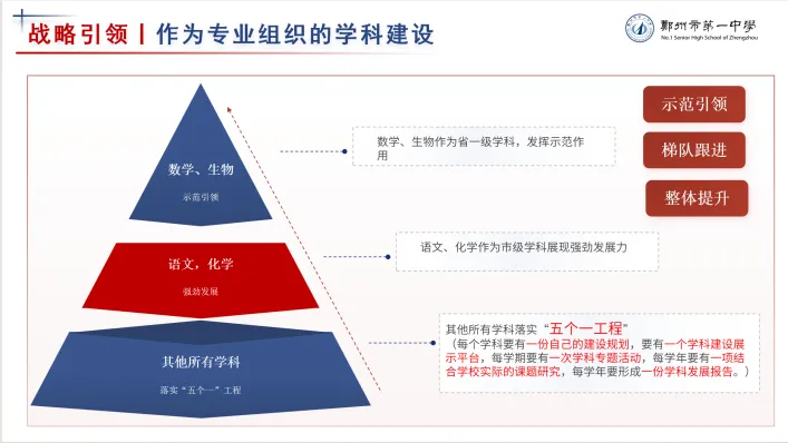 课程建设是学科发展的核心生命力。各学科立足“三新理念”,打造分层分类、特色鲜明的课程体系,语文组的“三级课程架构”、物理组的竞赛与强基校本课程,覆盖基础、提升、备考全学段,兼顾不同学生的发展需求;校本课程开发中,老师们充分挖掘学校师资优势、贴合学生特点,结合郑州本地历史文化、自然资源,打造出一批有内涵、有特色、实用性强的校本课程——历史组依托郑州商城遗址开展的博物馆沉浸式教学,让历史可触可感;政治组联动高校搭建的“大思政课”科创实践基地,实现了本土资源与育人目标的深度融合,让课程真正服务于学生成长。
