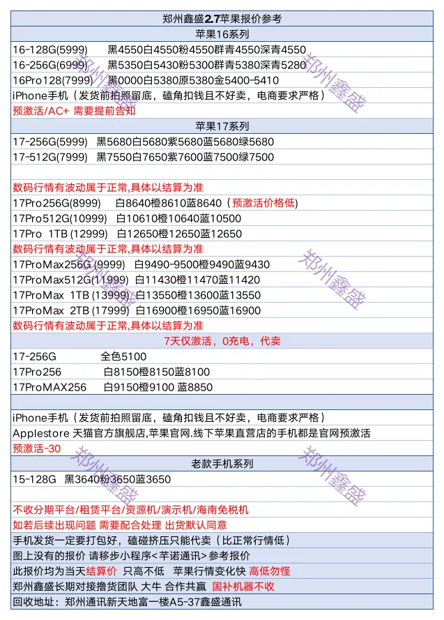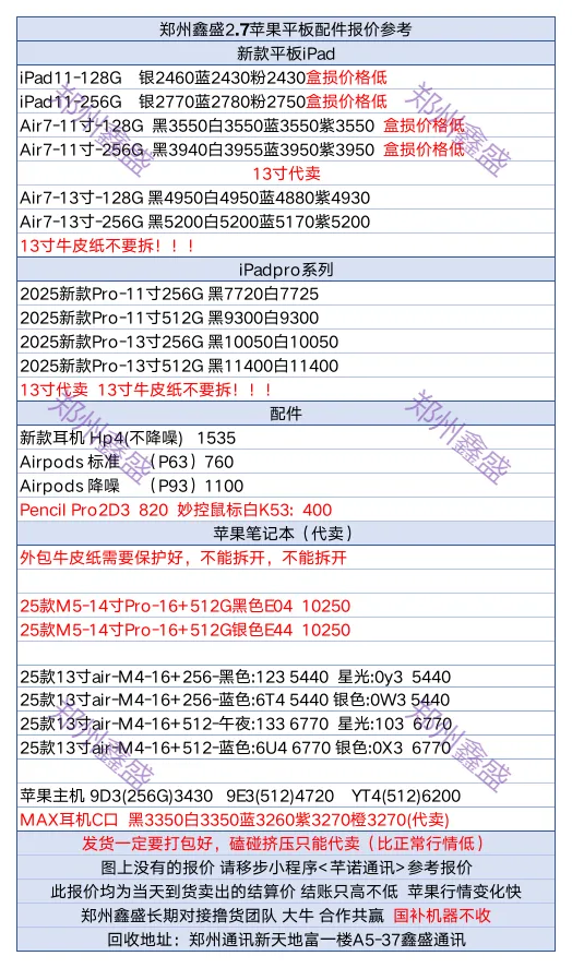 不会说漂亮话,也不懂什么洗脑套路,唯有实打实的诚意,苹果全系价格硬不硬. 看你们结算价格! 每天不限量求 🍎17/16/15 全系 🍎电脑·主机· 手表 ·平板 ·耳机配件等 有货全面来冲刺,跟郑州最高价冲刺