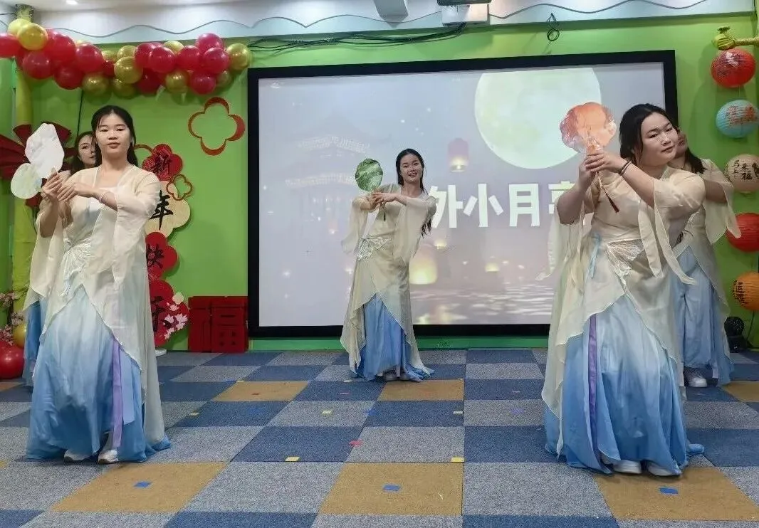 最后,未来听语集体课教师带来的舞蹈《城外小月亮》温情登场。