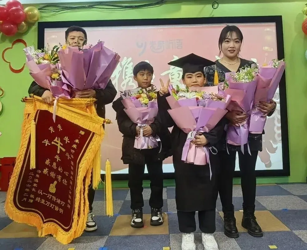 未来听语高新中心赵强荣主任为毕业生们颁发毕业证书,这张小小的证书,是孩子们人生中收获的第一份毕业证书,不仅是一份荣誉的见证,更是一场意义非凡的成长仪式。