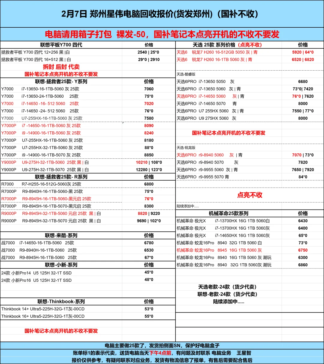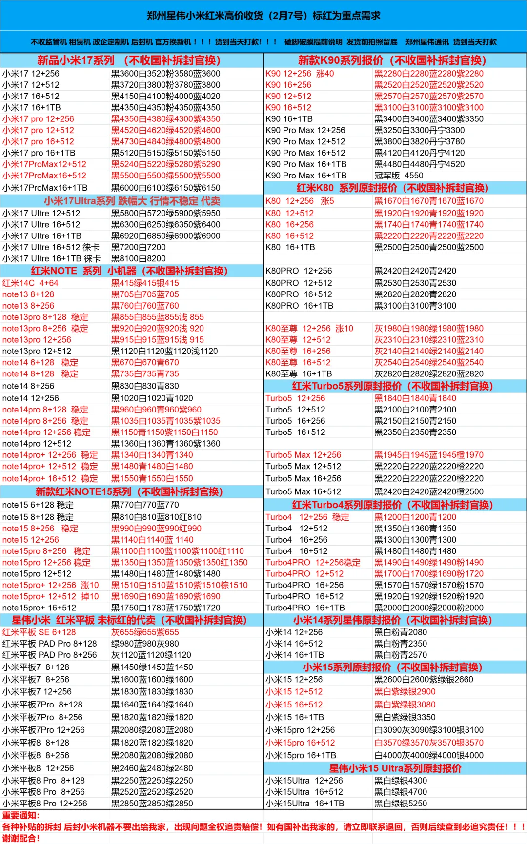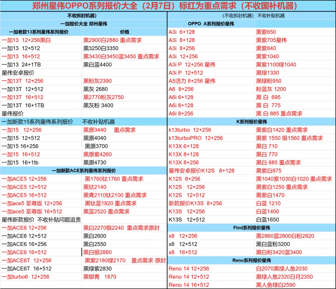 郑州轮聚通讯 2026年2.7日数码报价更新