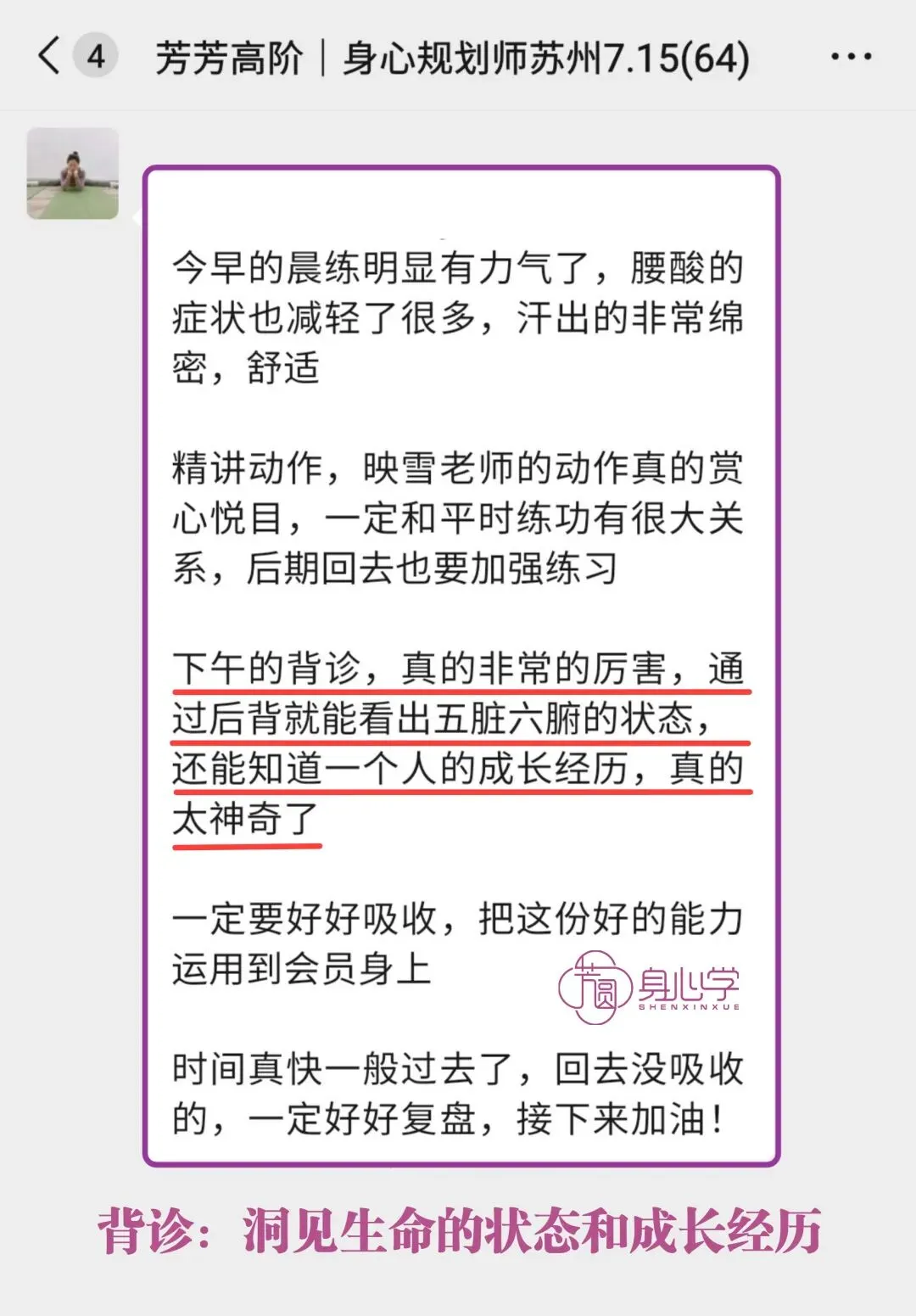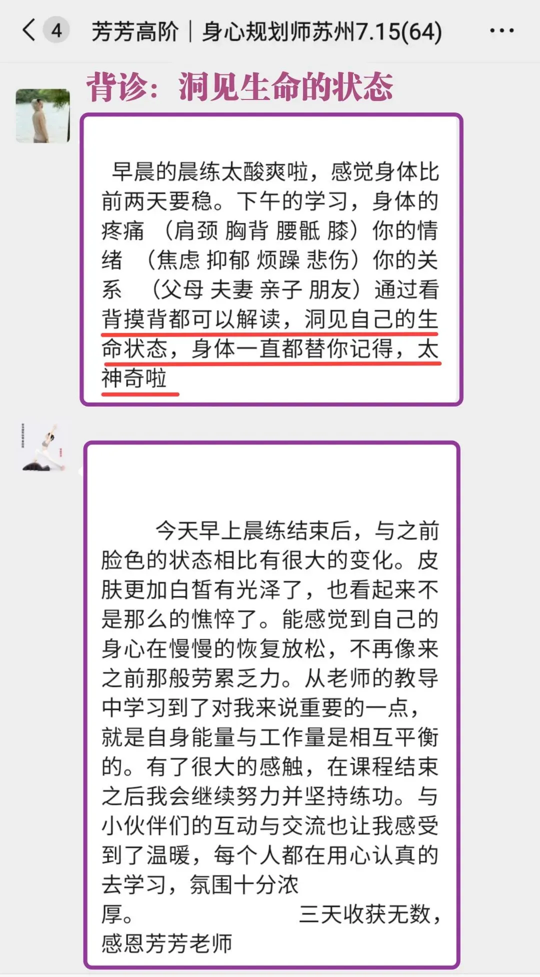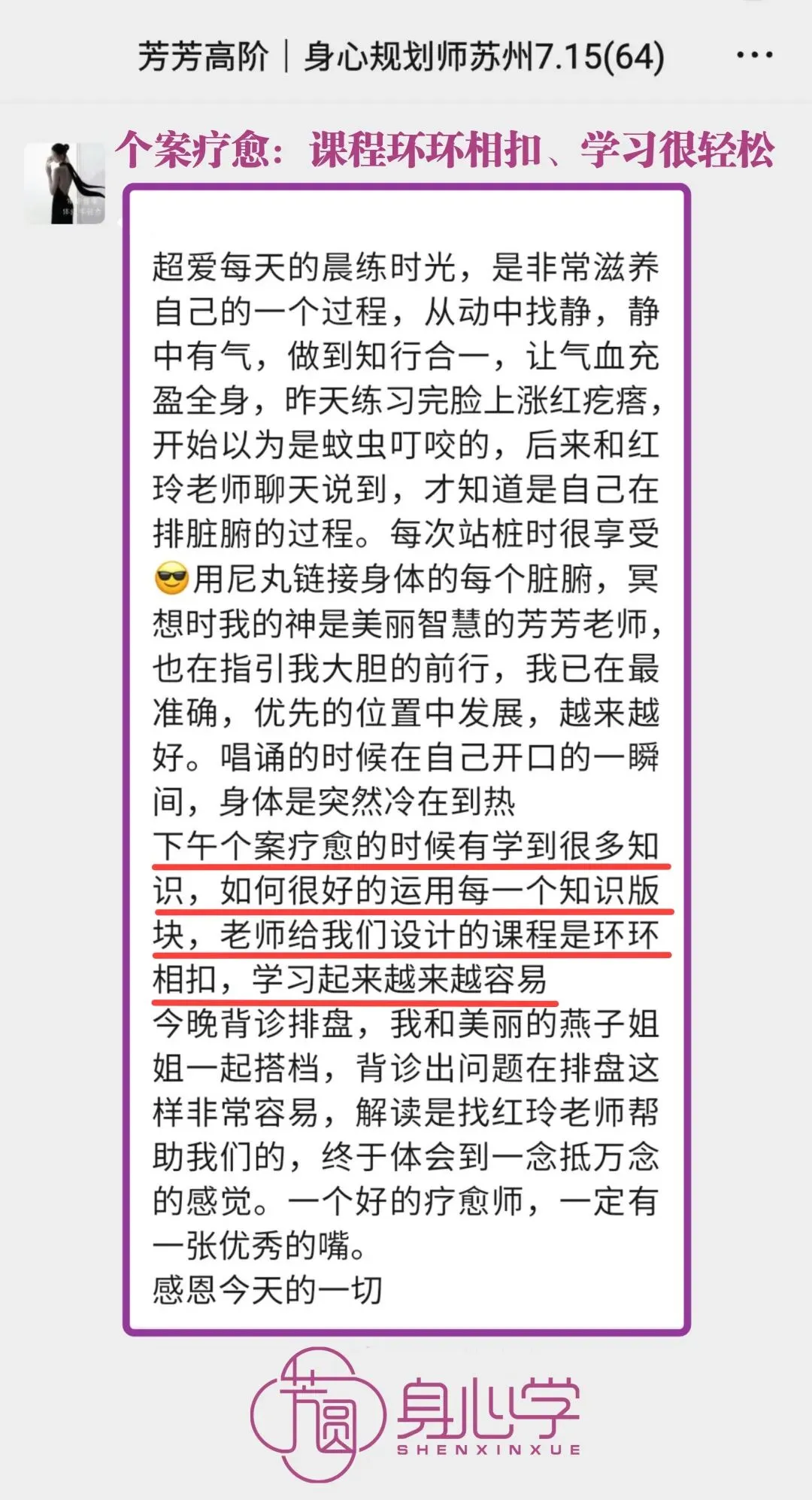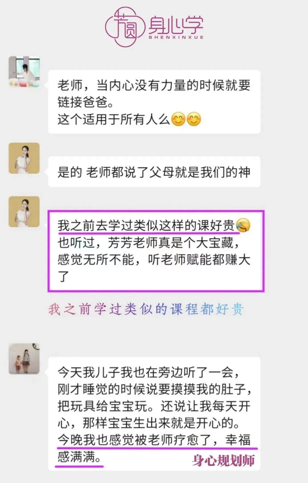 高阶《身心规划师》已经被芳芳老师立项,是被官方认证的培训项目。其所包含的气血调理训练模块和系统的疗愈方案,目前在国内10万元内的培训中基本找不到内容如此清晰,身心结合全面发展的疗愈课程。