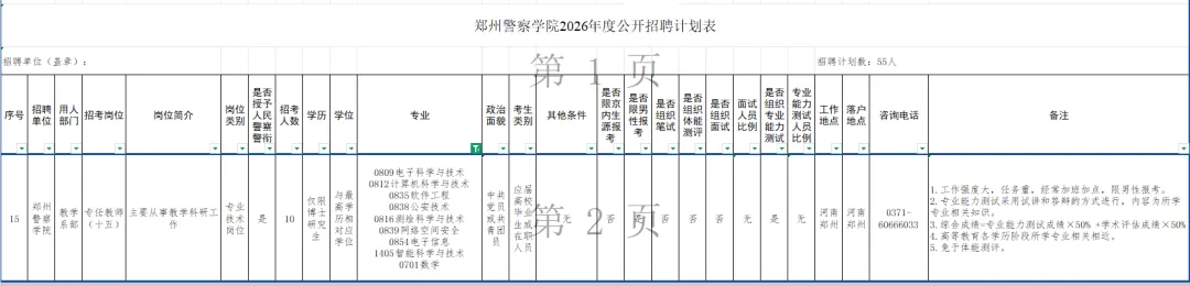 本次招聘共设置19个职位、拟招聘55人,均为学院在编人民警察。具体职位信息及资格条件详见《郑州警察学院2026年度公开招聘计划表》(见附件)。