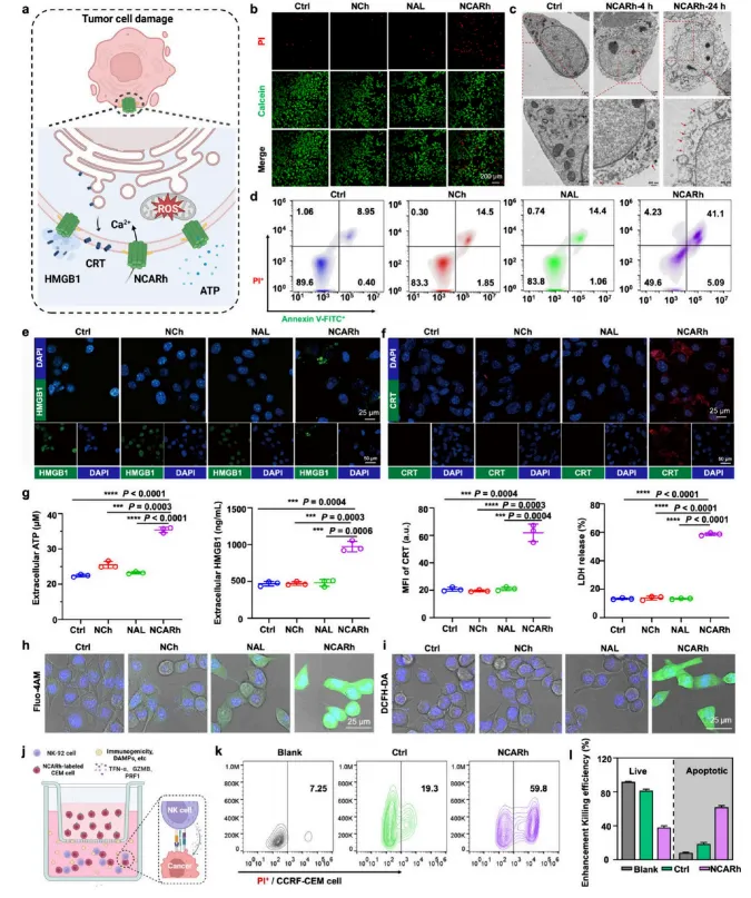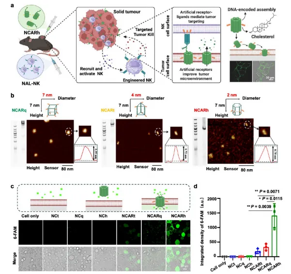 自主双功能设计:单一DNA纳米结构同时实现物理膜穿孔(诱导ICD)和分子识别(引导NK靶向),突破传统策略功能单一局限。