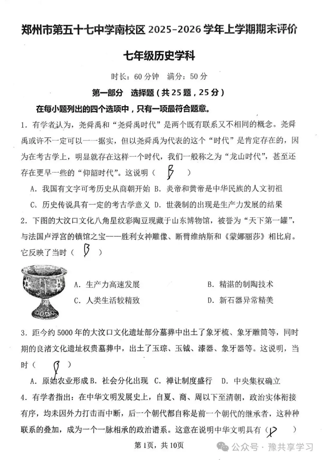 2026郑州市五十七中南校区初中七年级上学期期末《历史》试卷
