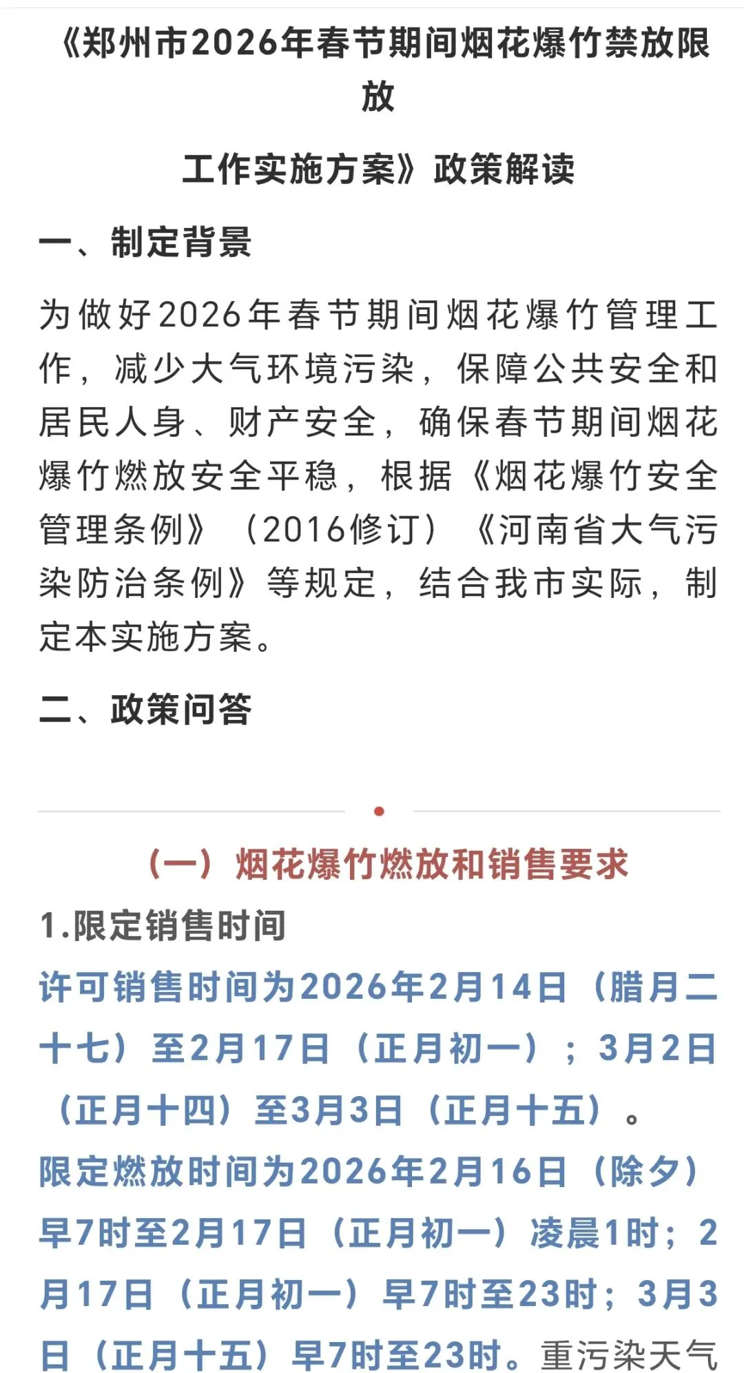 先给没跟上节奏的家人们补个课:郑州这波不是“彻底放飞”,而是从“全面禁放”改成了“有条件开嗨”,简单说就是“时间卡得死、区域划得清、品类管得严”,堪称“规矩里的叛逆”。咱先掰扯掰扯这政策到底咋回事——从2026年2月1日起,原来那套“不管啥时候、不管啥地方,放烟花就罚”的规定暂停执行了,但别以为就能随便点炮仗了,官方的限制条件能列满半张A4纸,比你上班的考勤制度还严。