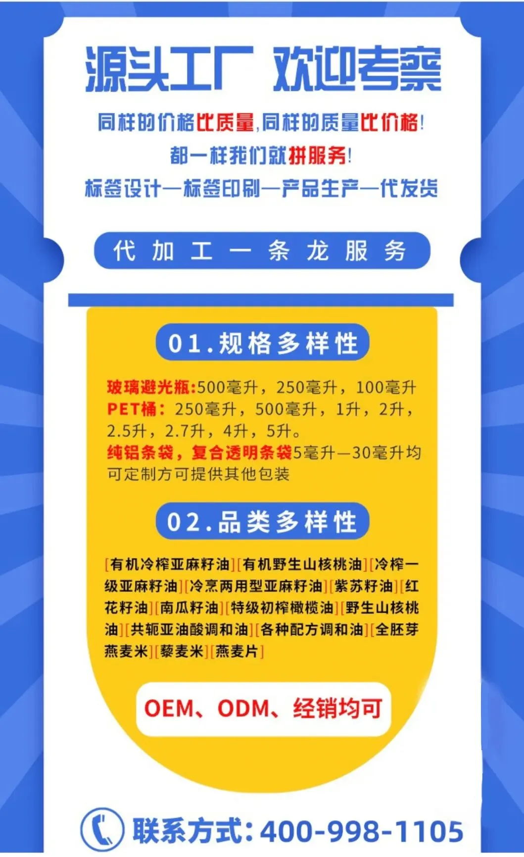 响应国家体重管理年号召,甘油二酯油赛道火热!我们提供全品类、全含量的代工服务,从生产到物流全程支持,适合想布局健康油脂的品牌方、渠道商,欢迎扫码洽谈~