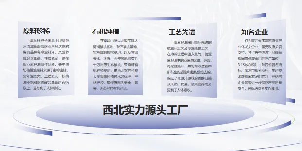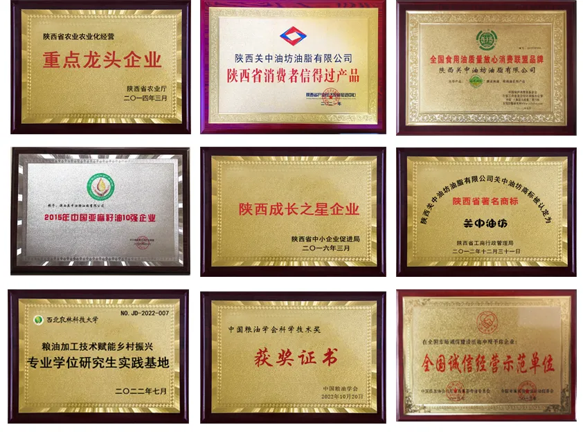 我们先后获评陕西省农业产业化重点龙头企业、全国诚信经营示范单位、中国亚麻籽油 10 强企业等多项荣誉,政企与行业双重认证,为合作筑牢信任根基