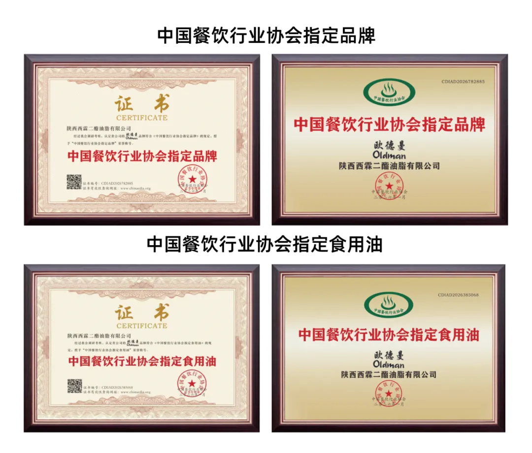 我们的产品通过中国餐饮行业协会认证,成为 “指定品牌” 与 “指定食用油”,适配餐饮渠道的专业需求,从专业后厨到家庭餐桌,给你安心保障。