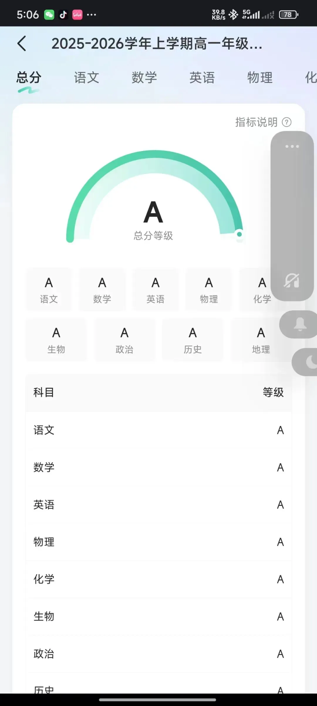 今天周五,上高一的儿子返程回家的路上,第一时间向我分享了他的期末成绩单。所有的科目全是A,在手机APP上绘制成饱满的圆。