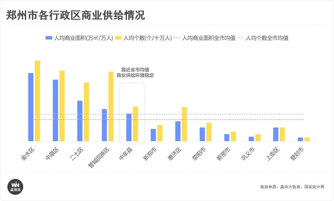 截至2026年1月31日,郑州市商业项目存量共计129个(购物中心+独立百货),存量规模超1018万㎡,分行政区来看,郑州杉杉项目所在的中牟县商业供给呈现“低饱和度+高适配性”特征,为中高端奥莱发展预留充足空间。从数据来看,郑州杉杉奥特莱斯所处的中牟县人均商业面积1.0万㎡/万人、人均商业个数1.28个/十万人,虽略高于郑州市0.8万㎡/万人、1.0个/十万人的均值,但与核心城区相比差距显著,商业竞争压力温和。